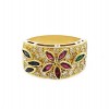 Par de pendientes de oro amarillo 18K (750/1000 milésimas) con circonitas. Montura con forma de media criolla con tres circonitas de colores, verde, amarillo y rosa. La longitud del pendiente es 13.00 mm y su anchura 3.80 mm. El cierre es de presión.