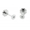 Pendientes de oro blanco de 750 milésimas (18K) con dos diamantes naturales. Peso total de los diamantes es 0.22 quilates. Color H (Wesselton). Pureza SI. Los diamantes están engastados en una montura de chatón que tiene un diámetro de 5.50 mm. El cierre es de presión.