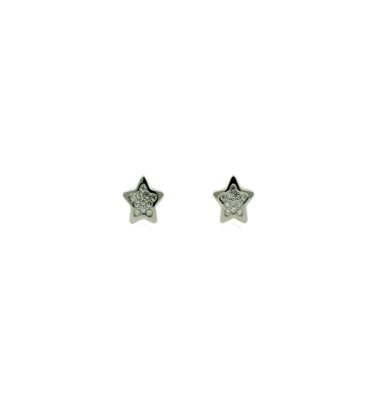 Montura de oro blanco en brillo con forma de estrella de cinco puntas con once circonitas.