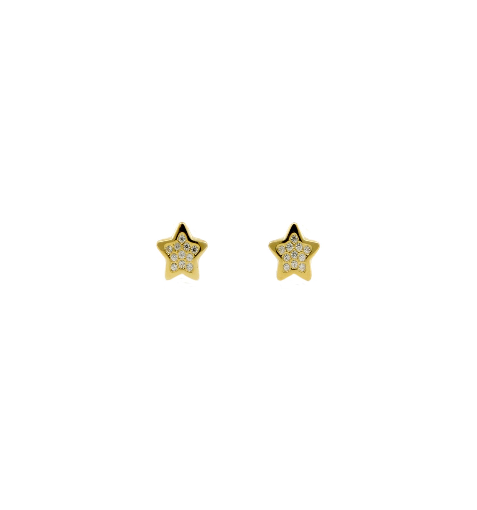 Montura de oro amarillo en brillo con forma de estrella de cinco puntas con once circonitas.