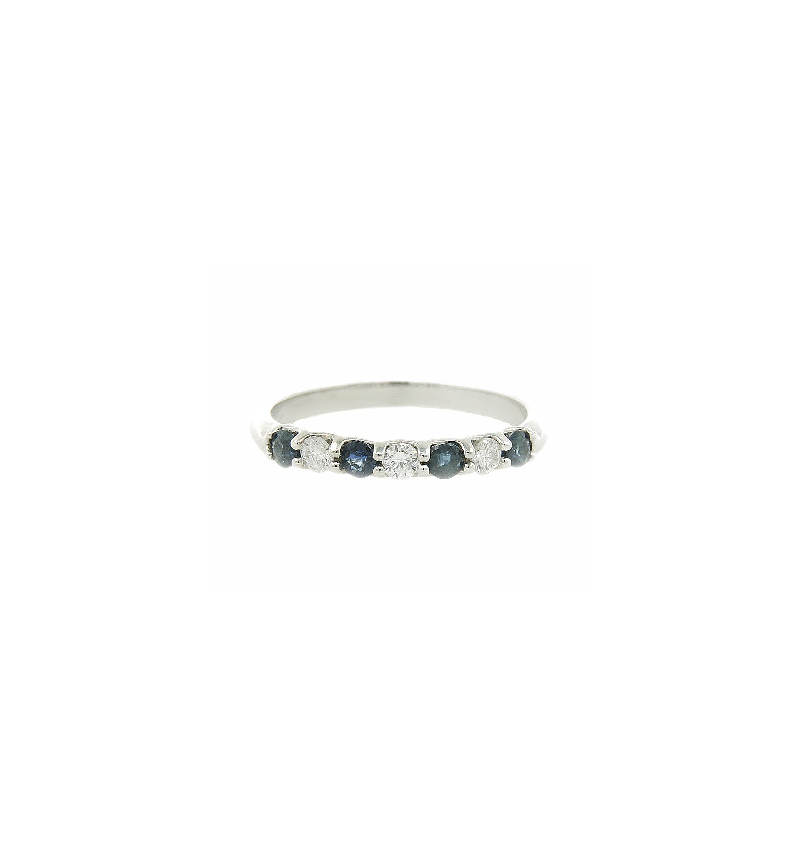 Sortija oro oro blanco de 750 milésimas (18K) con diamantes y zafiros naturales.