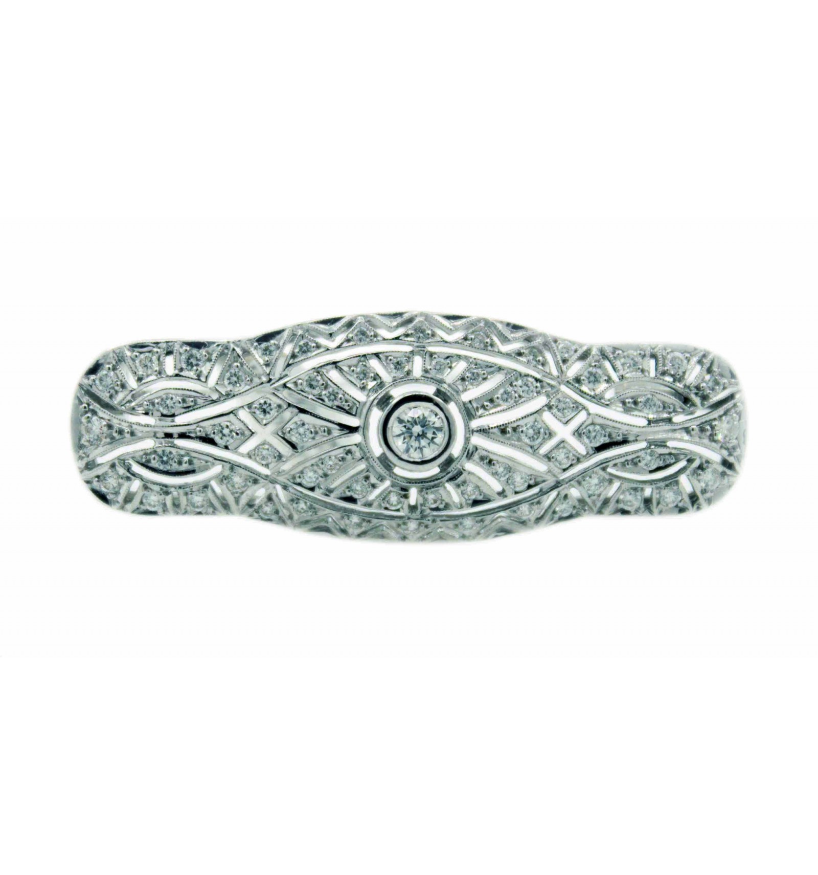 Broche estilo art decó de oro blanco de 750 milésimas (18K) con 61 diamantes talla brillante.