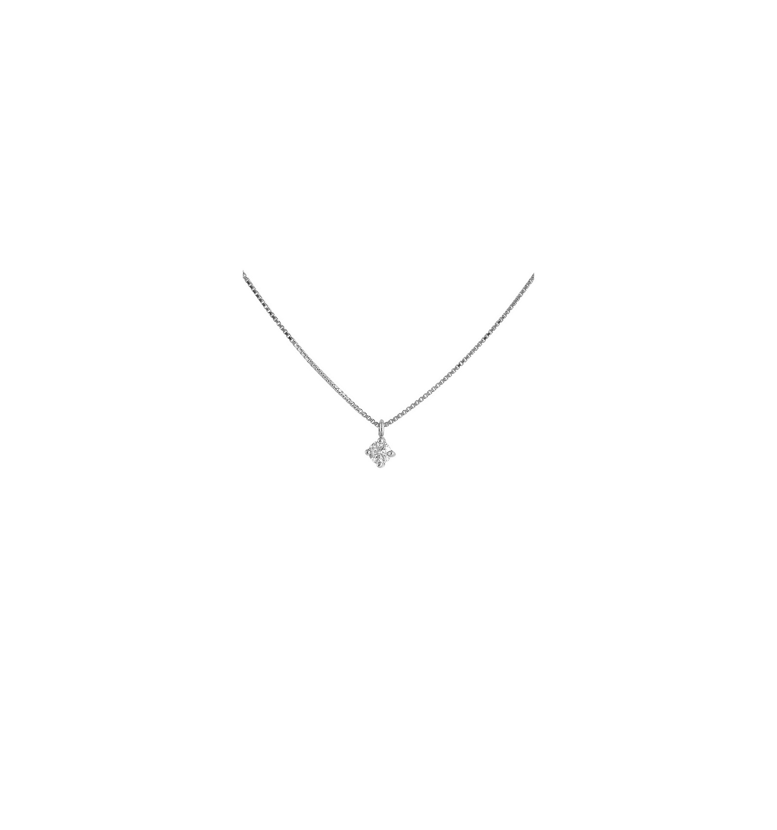 Colgante y cadena de oro blanco de 750 milésimas (18K) con un diamante talla brillante engastado en montura de cuatro garras.