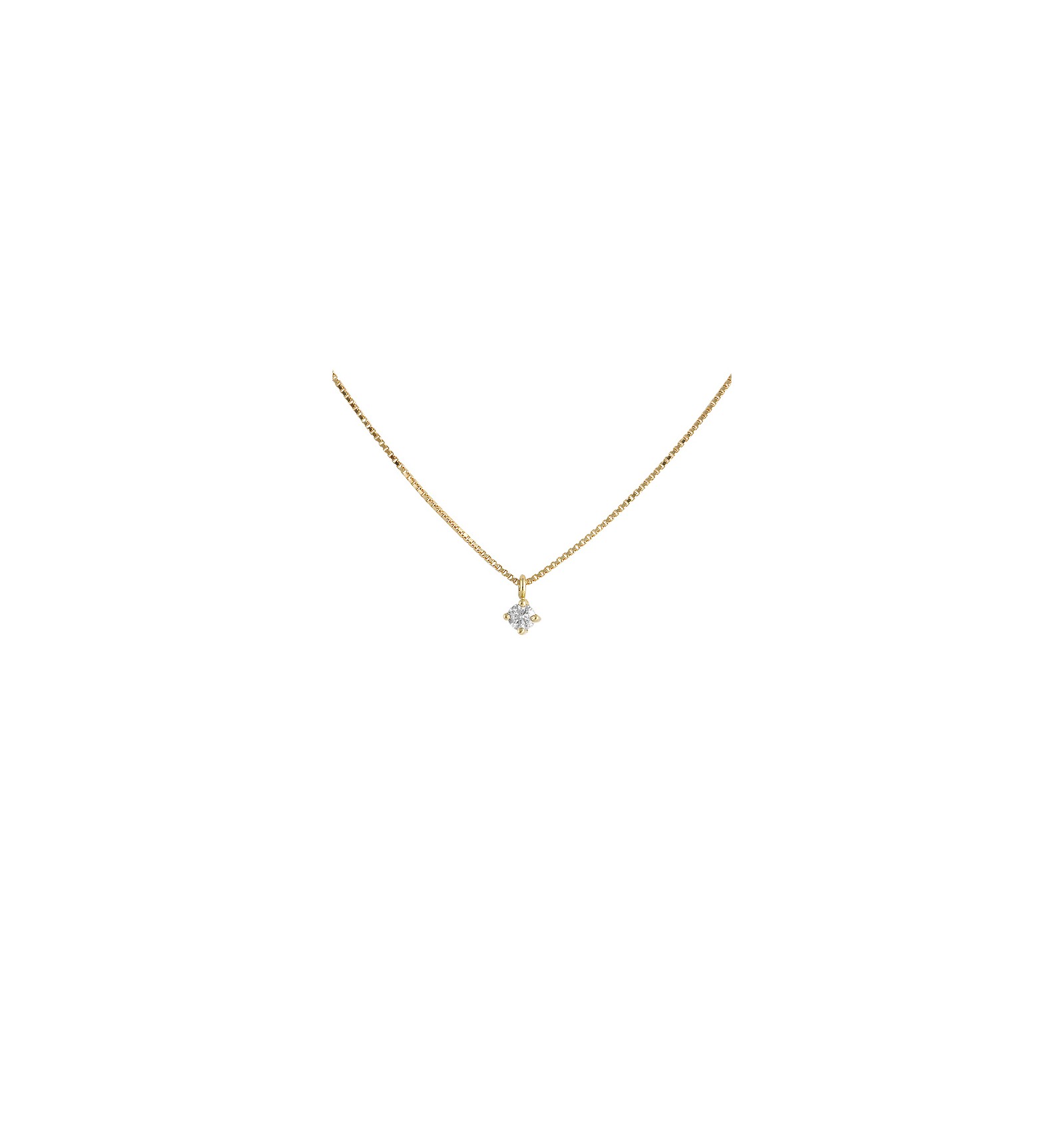 Colgante y cadena de oro amarillo de 750 milésimas (18K) con un diamante talla brillante. engastado en montura de cuatro garras.