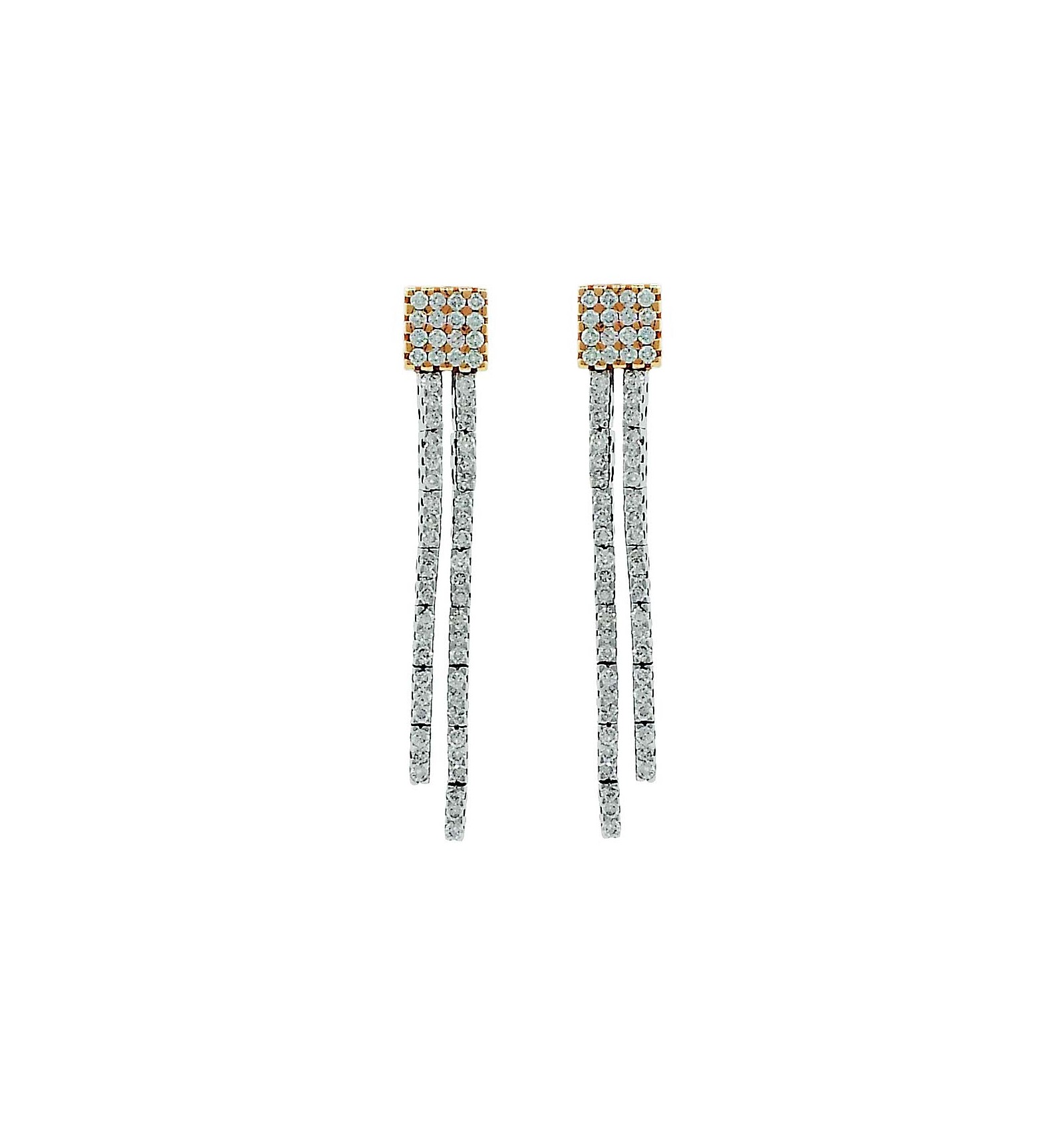 Par de pendientes de oro blanco y oro rosa de 750 milésimas (18K) con diamantes talla brillante.