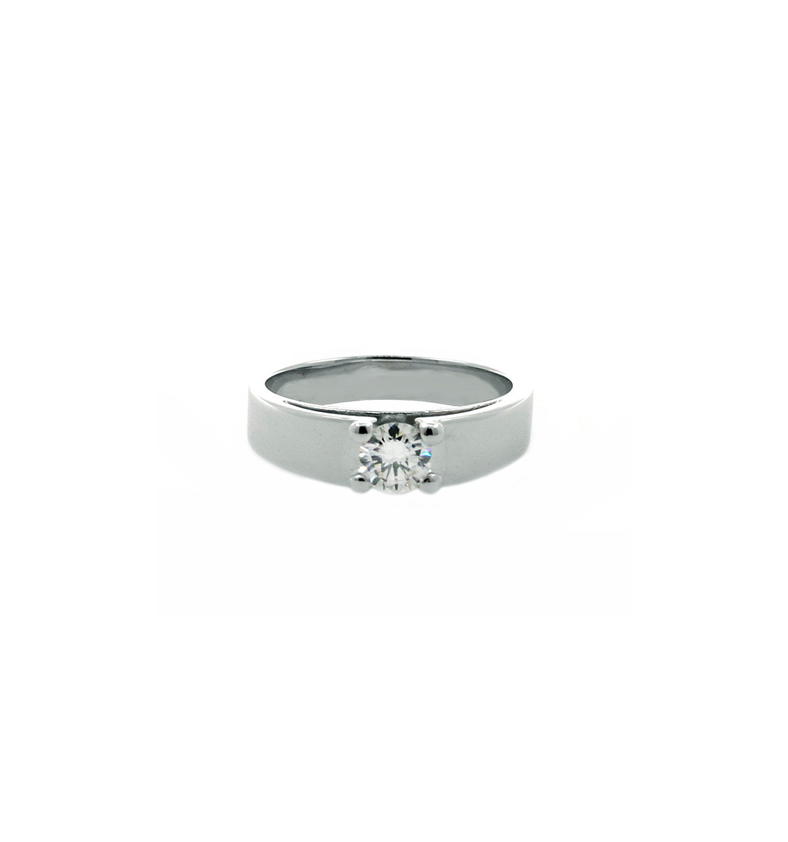 Solitario de oro blanco de 750 milésimas (18K) con un diamante talla brillante.