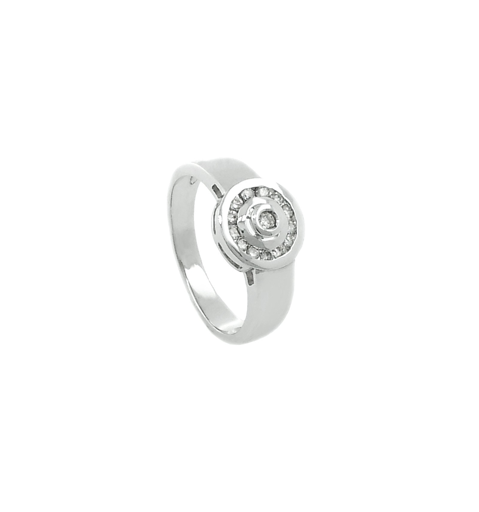 Sortija de oro blanco de 750 milésimas (18K) con catorce diamantes talla brillante.