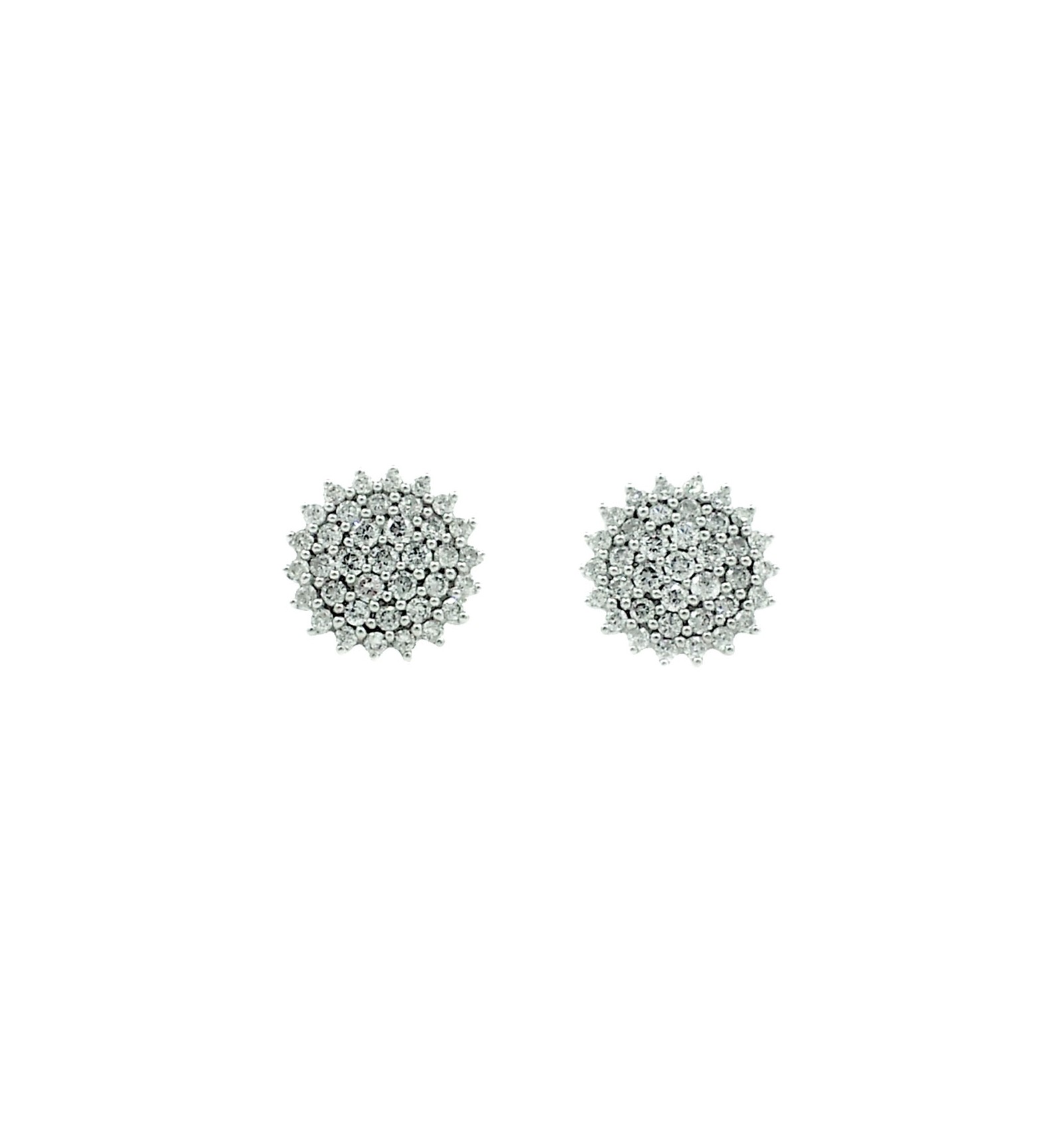 Par de pendientes de roseta de oro blanco de 750 milésimas (18K) con diamantes talla brillante.