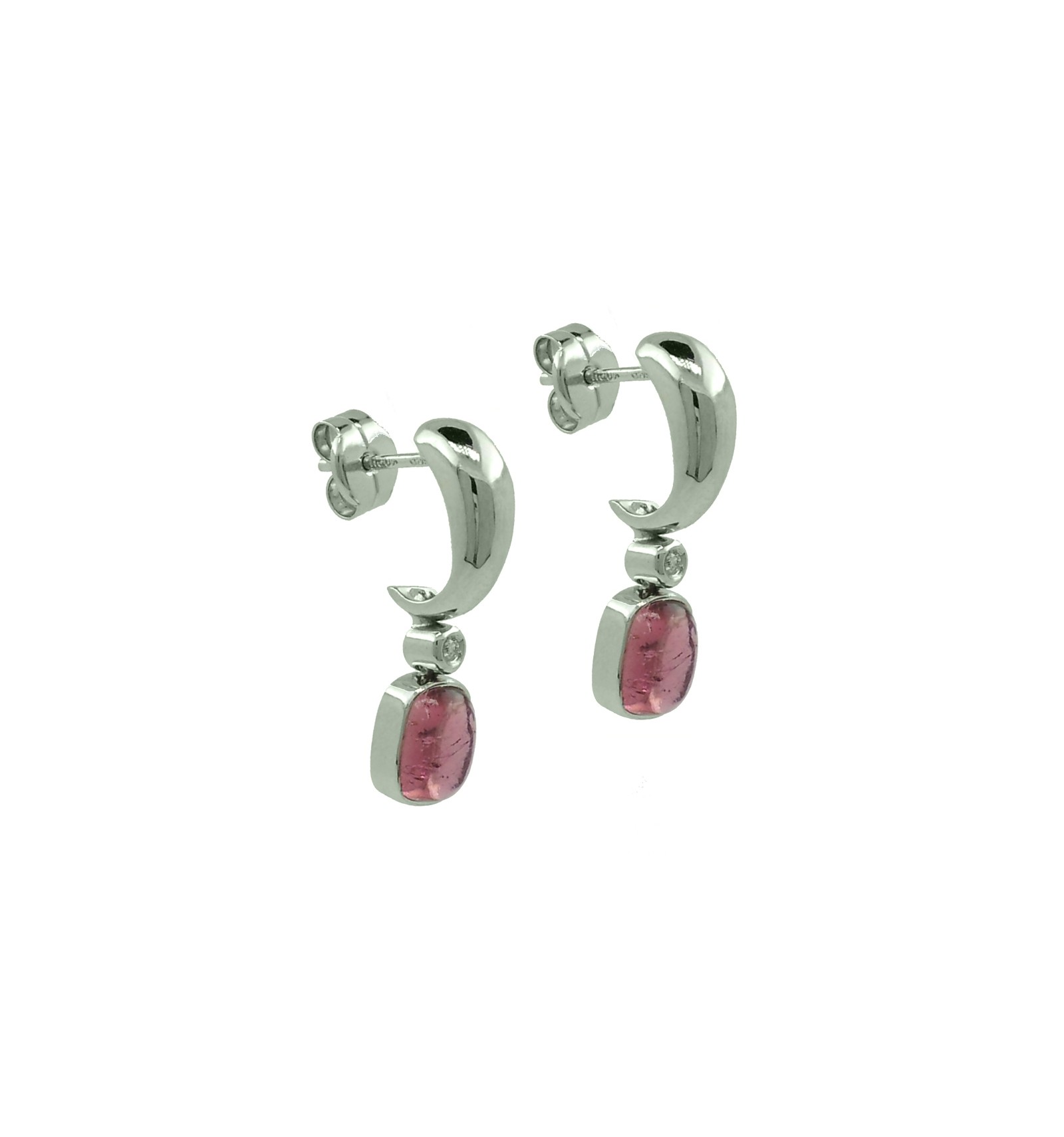 Par de pendientes de oro blanco de 750 milésimas (18K) con diamantes talla brillante y turmalina rosa.