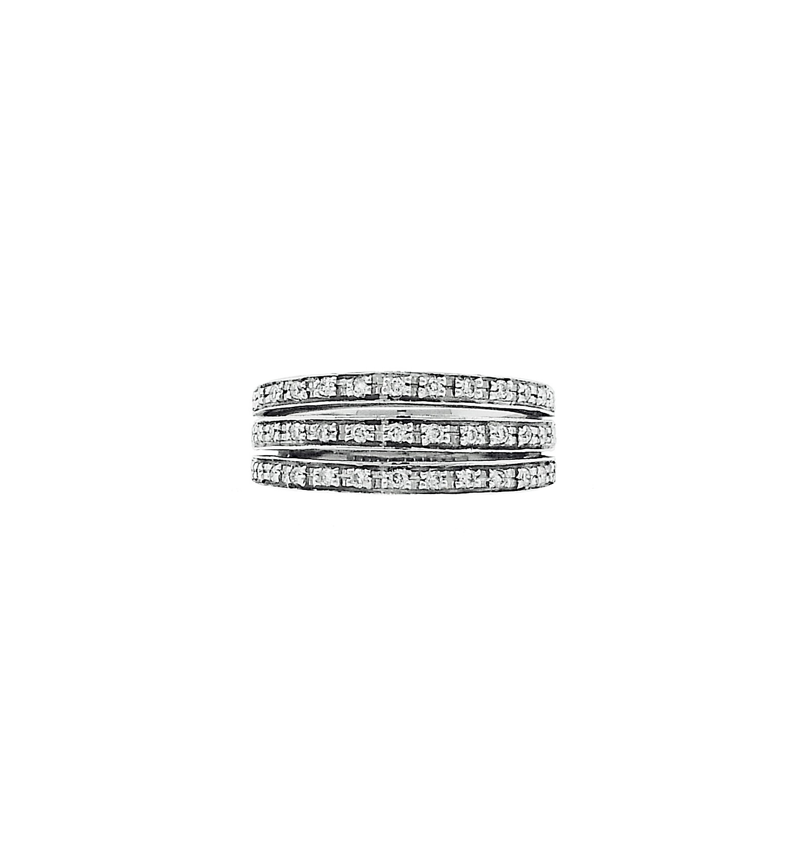 Diamantes engastados en carril en tres hileras ligeramante separadas.