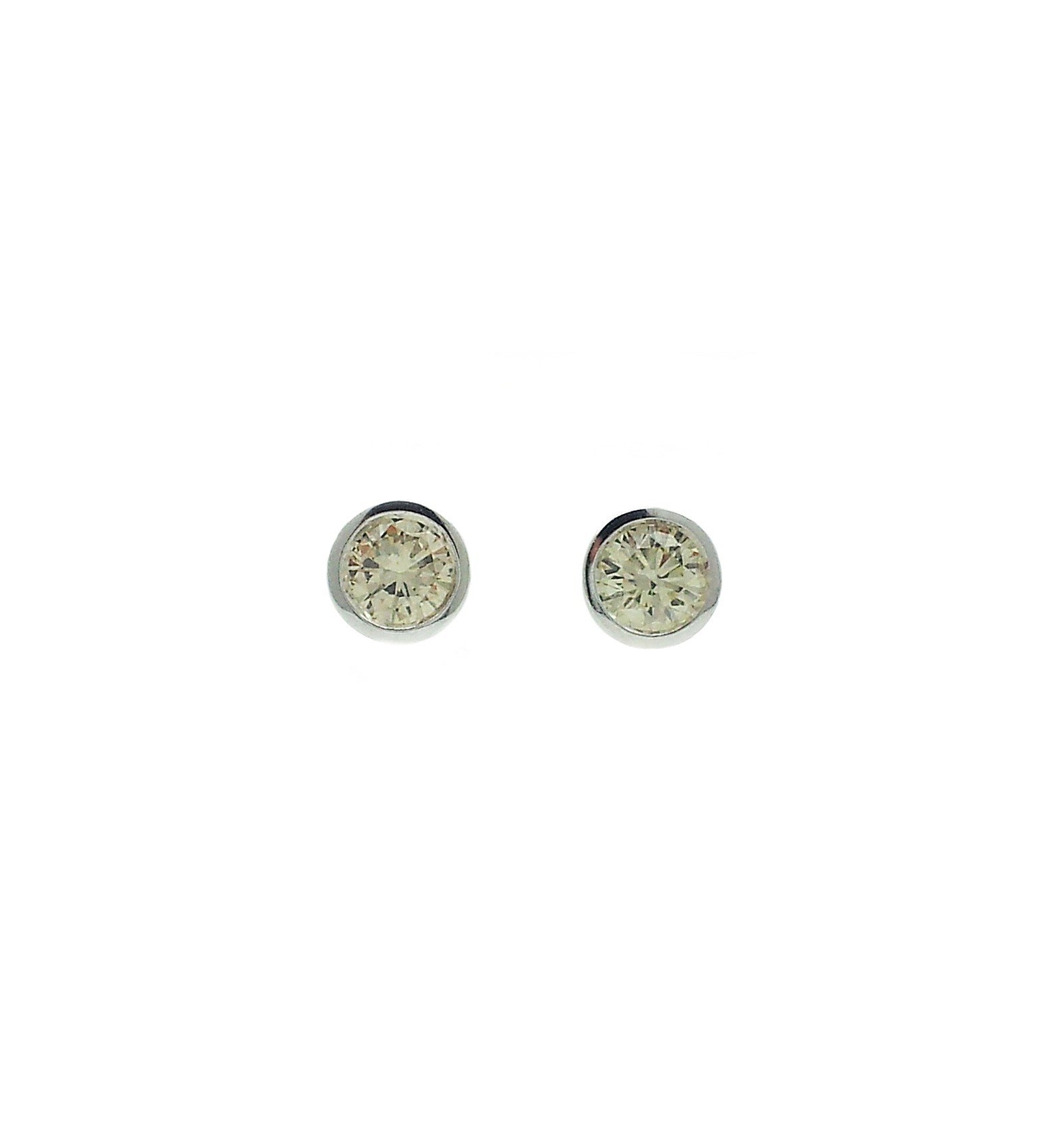 Montura de oro blanco en brillo con dos diamantes engastados en chatón redondo de 4.80 mm de diámetro.