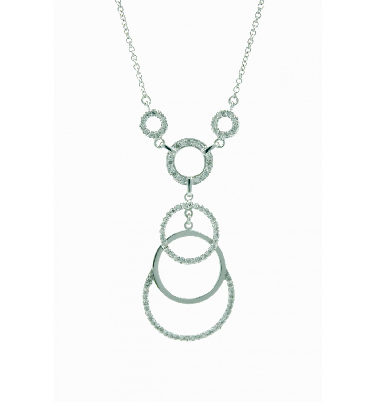 La gargantilla va con una cadena de oro blanco tipo rolo de 43.00 cms de largo.