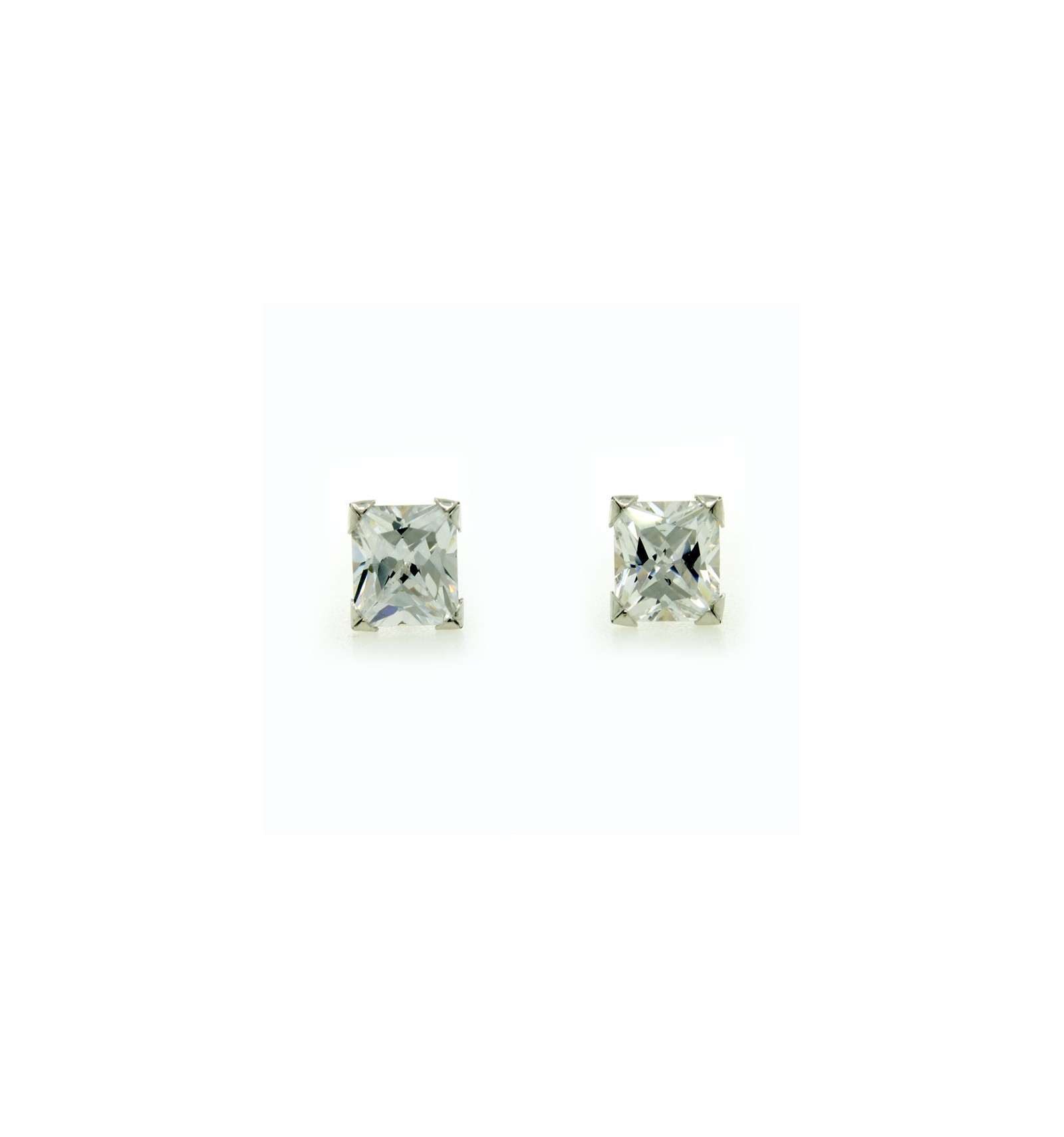 Montura de cuatro garras de oro blanco en brillo con una circonita blanca cuadrada.