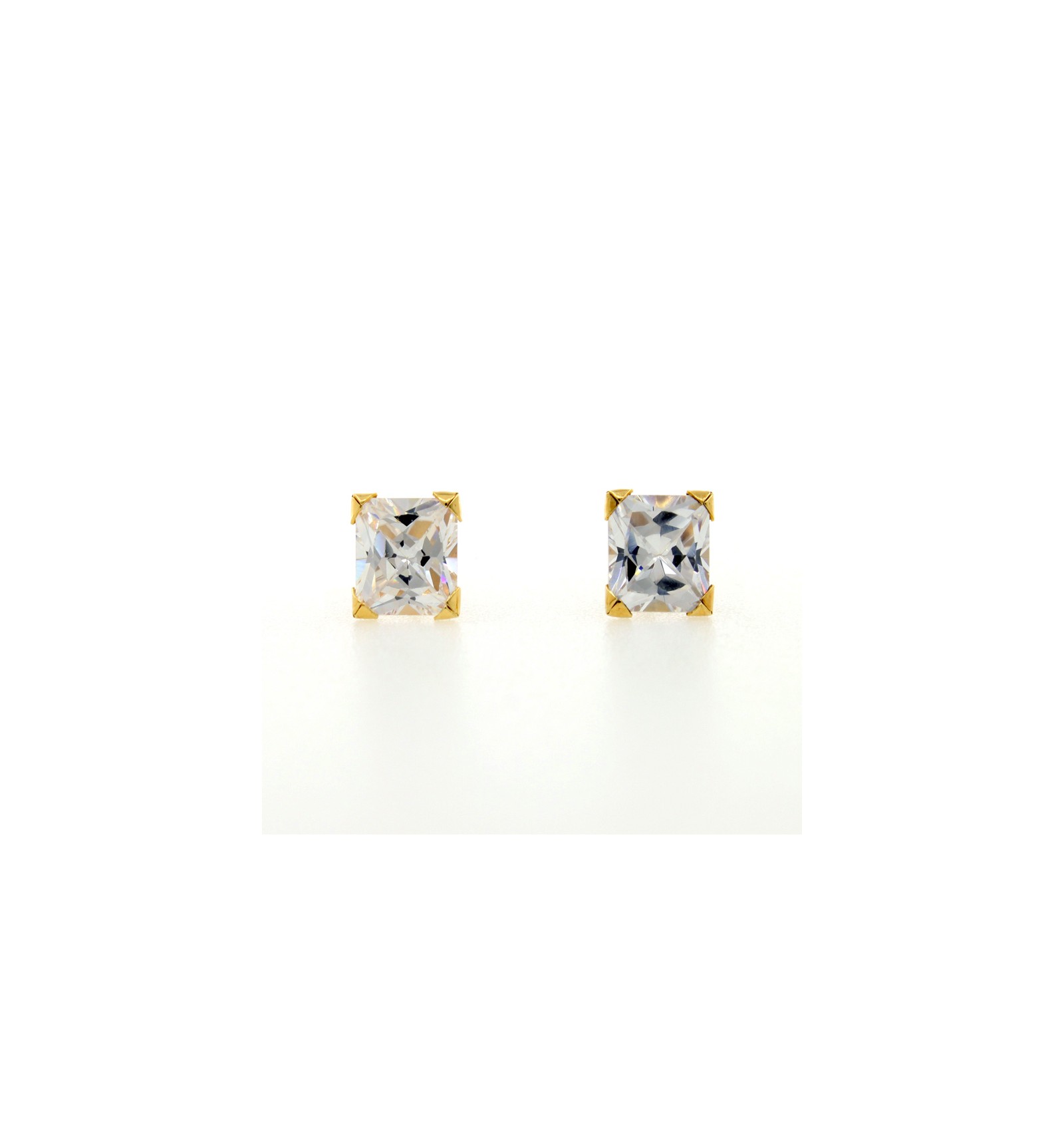 Montura de cuatro garras de oro amarillo en brillo con una circonita blanca cuadrada.