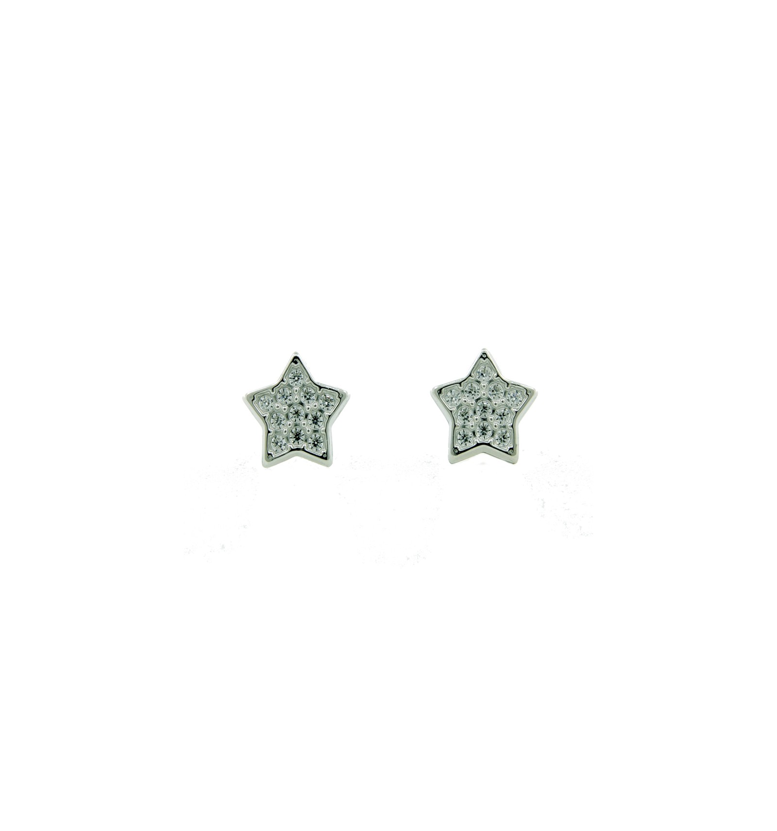Pendientes de oro blanco de 750 milésimas (18K) con forma de estrella de cinco puntas y engastado de circonitas blancas en pavé.