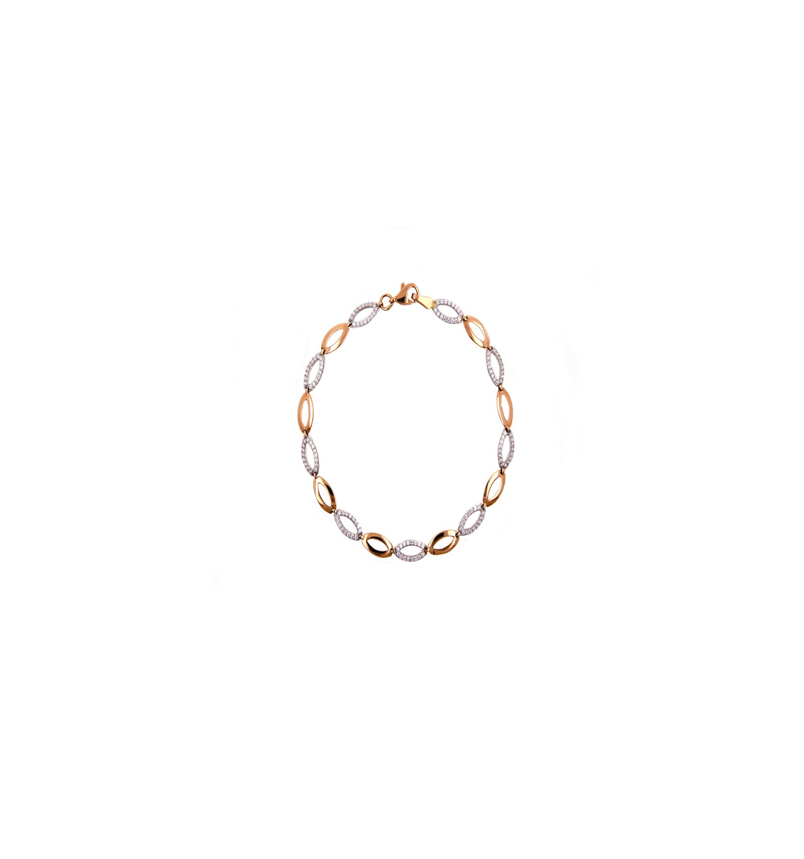 Pulsera de eslabones combinada en oro blanco y oro rosa, toda en brillo. Los eslabones blancos llevan circonitas engastadas en garras.