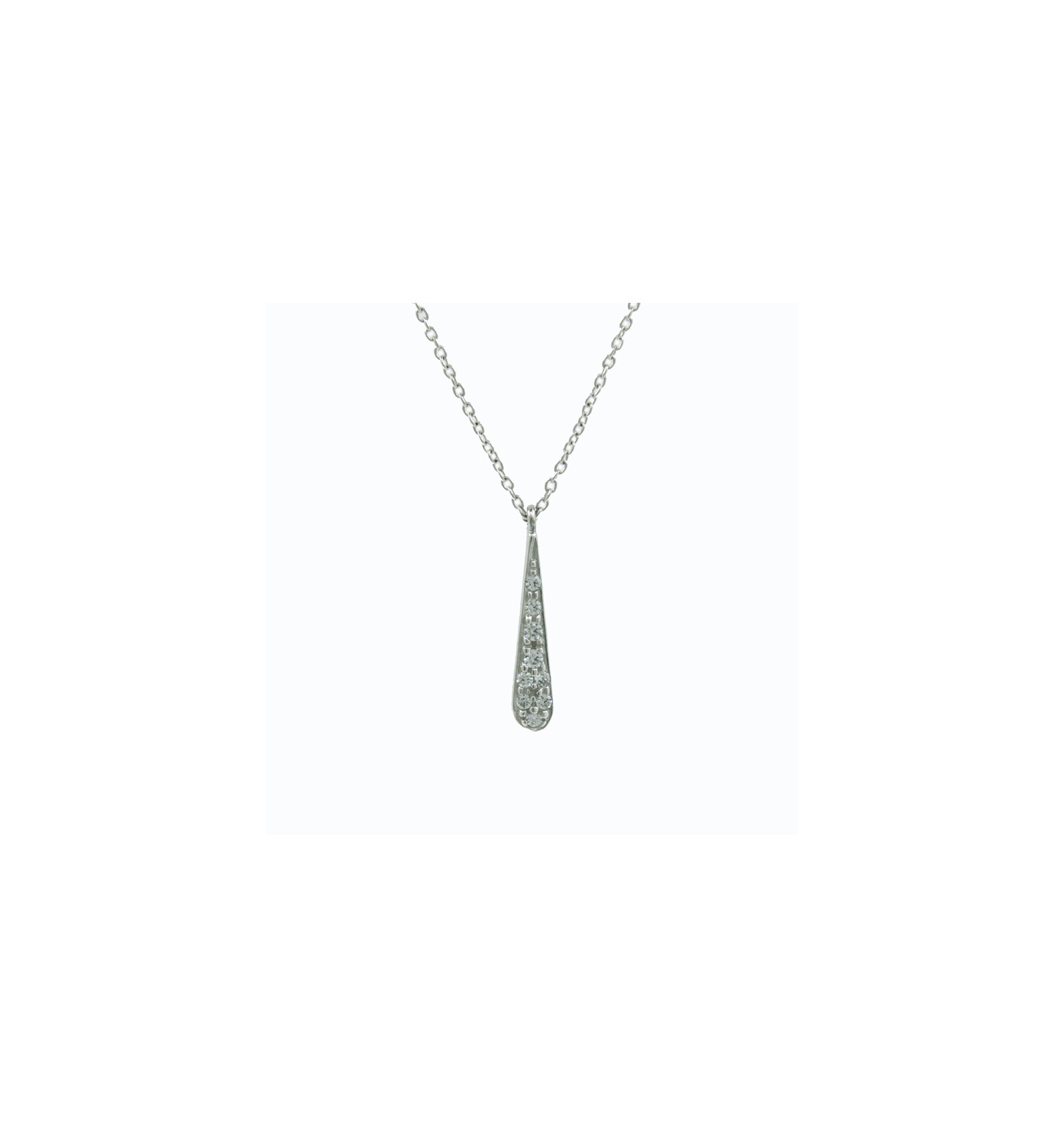 Colgante de oro blanco de 750 milésimas con circonitas y cadena de oro blanco de 750 milésimas.