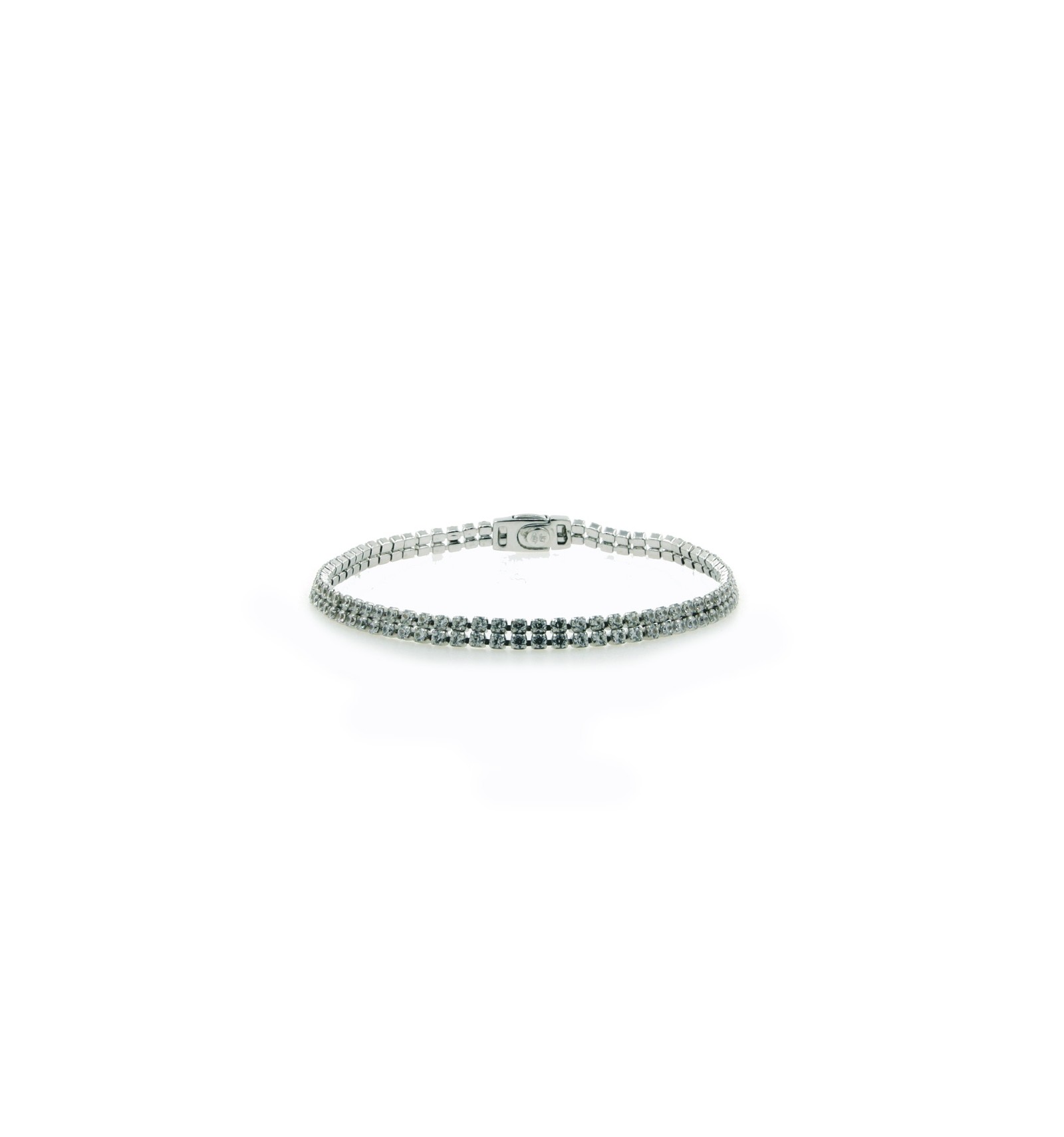 Pulsera de oro blanco de 750 milésimas (18K) con baño de rodio y circonitas engastadas en dos filas paralelas de garras.