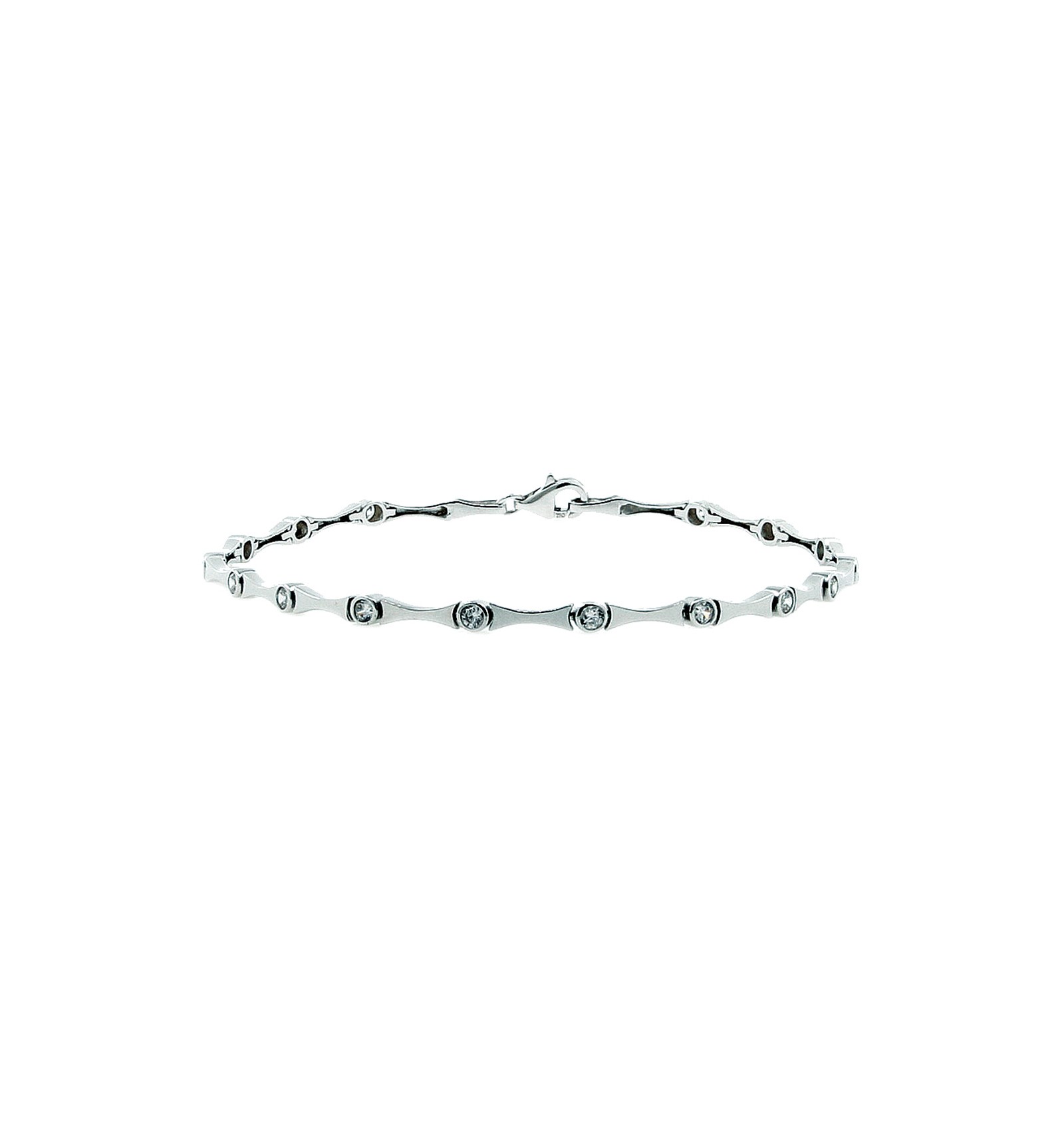 Pulsera de oro blanco de 750 milésimas (18K) con baño de rodio y circonitas.