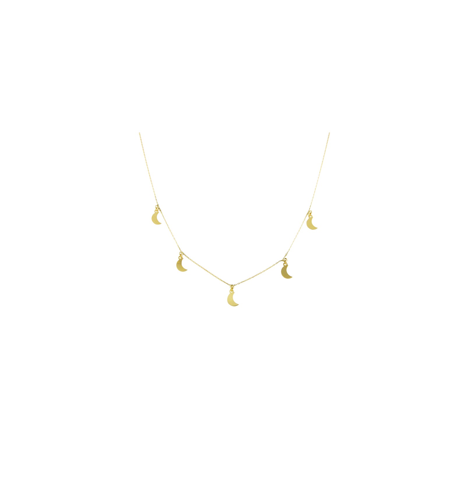 Cadena modelo forsat de oro amarillo de 750 milésimas (18K) con cinco colgantes en forma de luna también de oro amarillo de 18K.