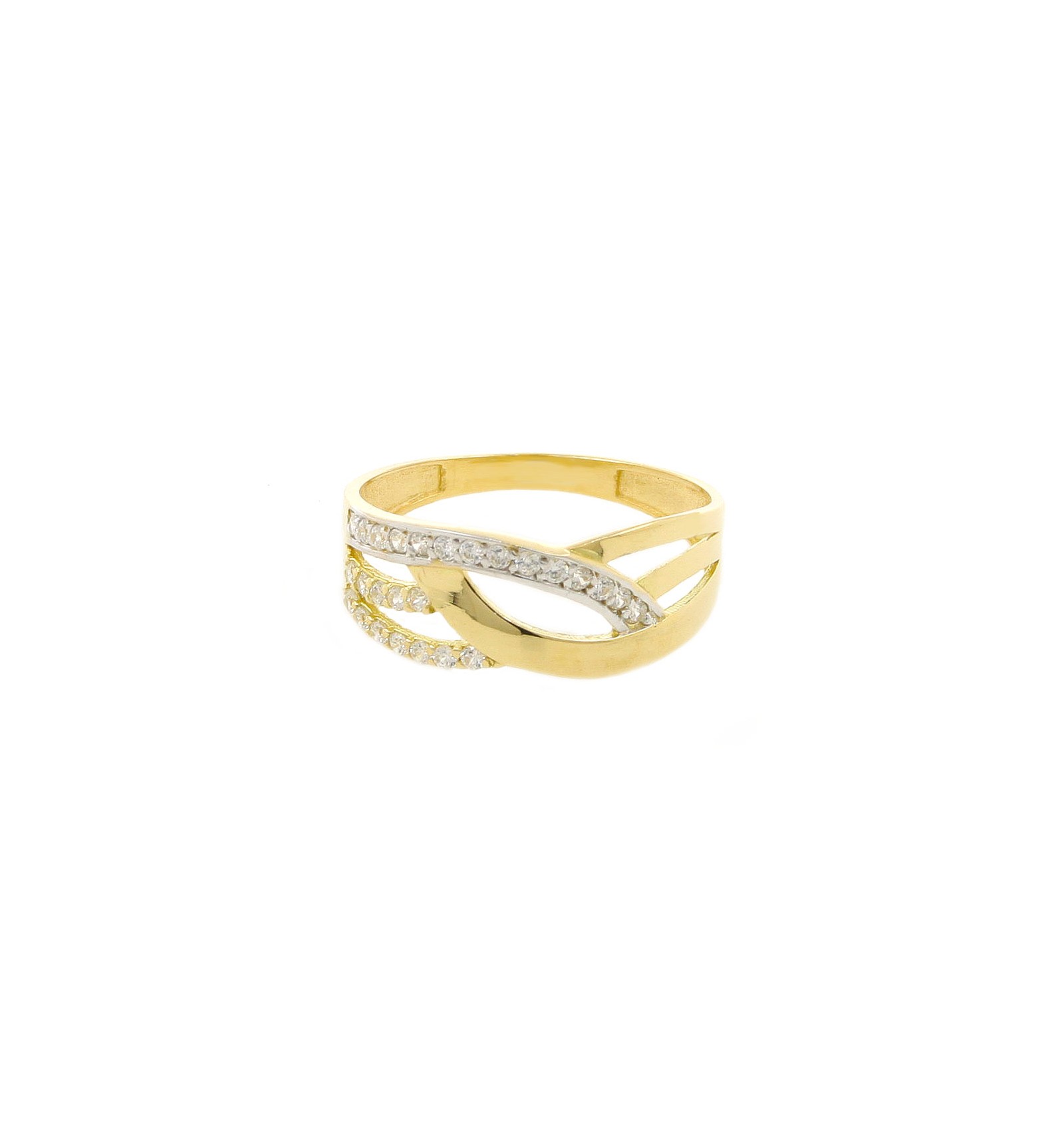 Montura calada con un diseño cruzado de ondas con tres hileras de circonitas blancas engastadas en carril.