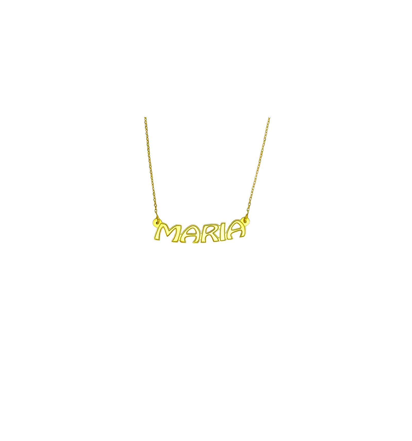 Colgante en brillo de nombre en mayúsculas con cadena modelo forsat en oro amarillo de 750 milésimas (18K).