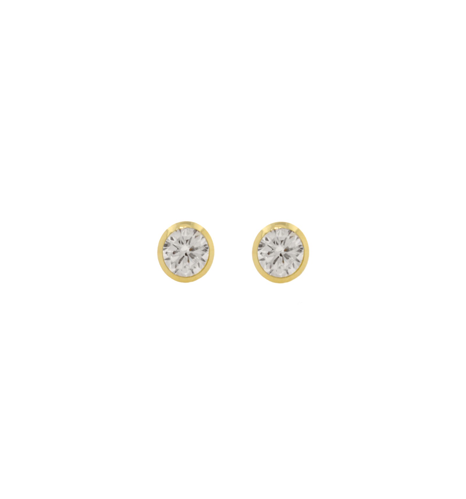 Montura de chatón calada de oro amarillo en brillo con un zirconita blanca talla brillante.