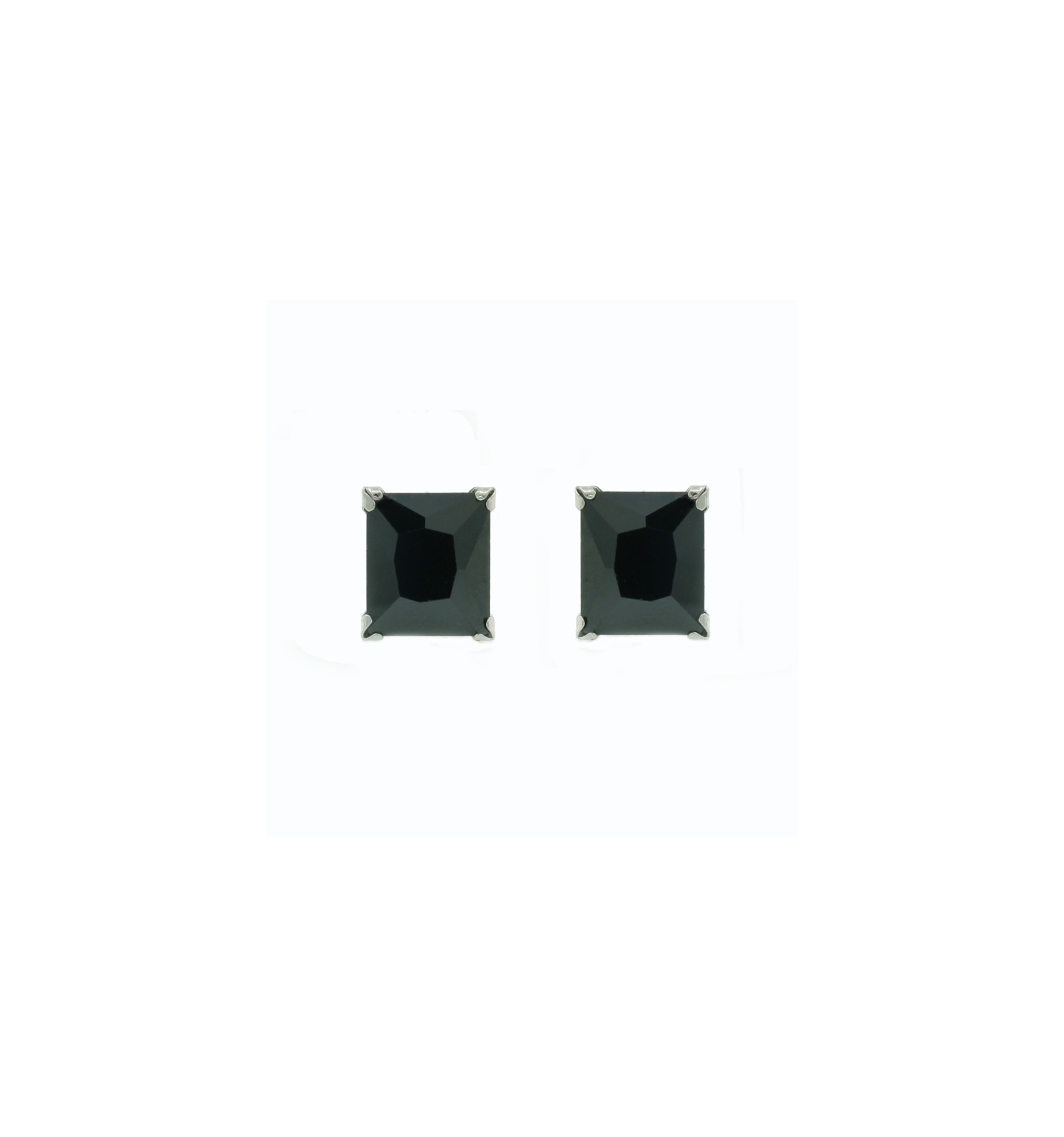 Montura cuadrada de garras de oro blanco en brillo con una circonita negra talla cuadrada.