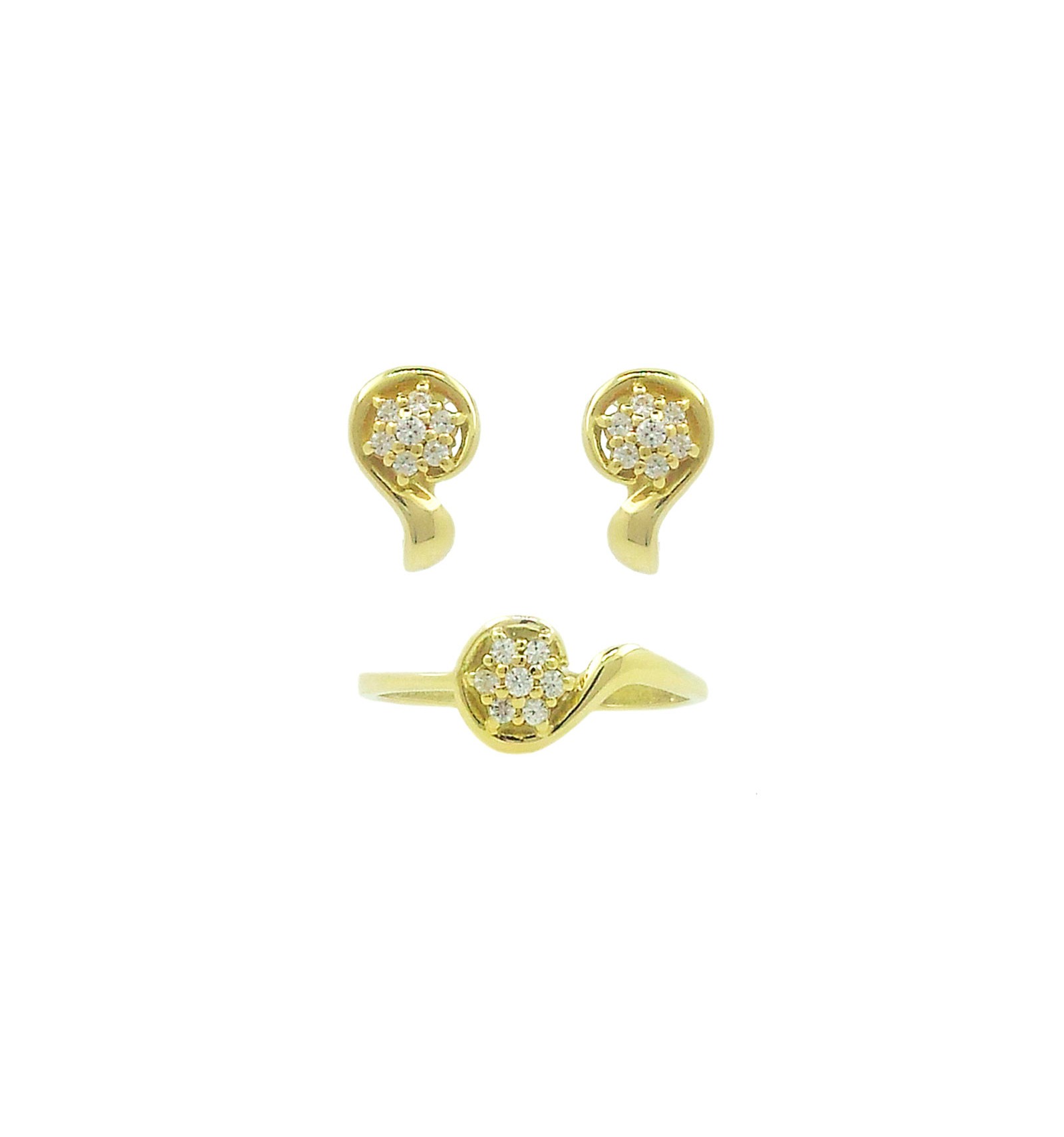 Juego de pendientes y sortija de oro amarillo de 750 milésimas (18K) con circonita.
