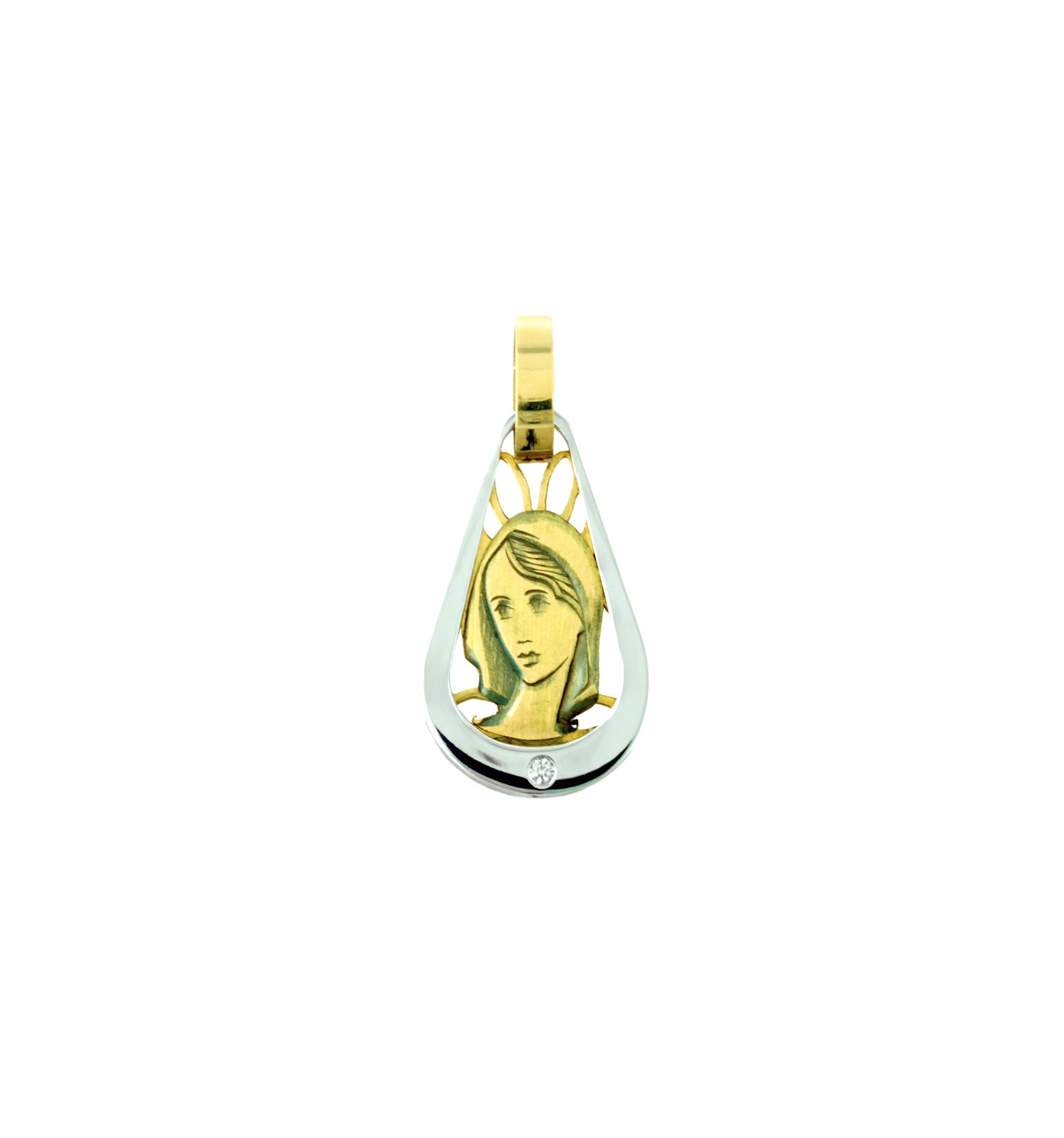 Medalla de oro blanco y oro amarillo de 750 milésimas (18K) con diamante.