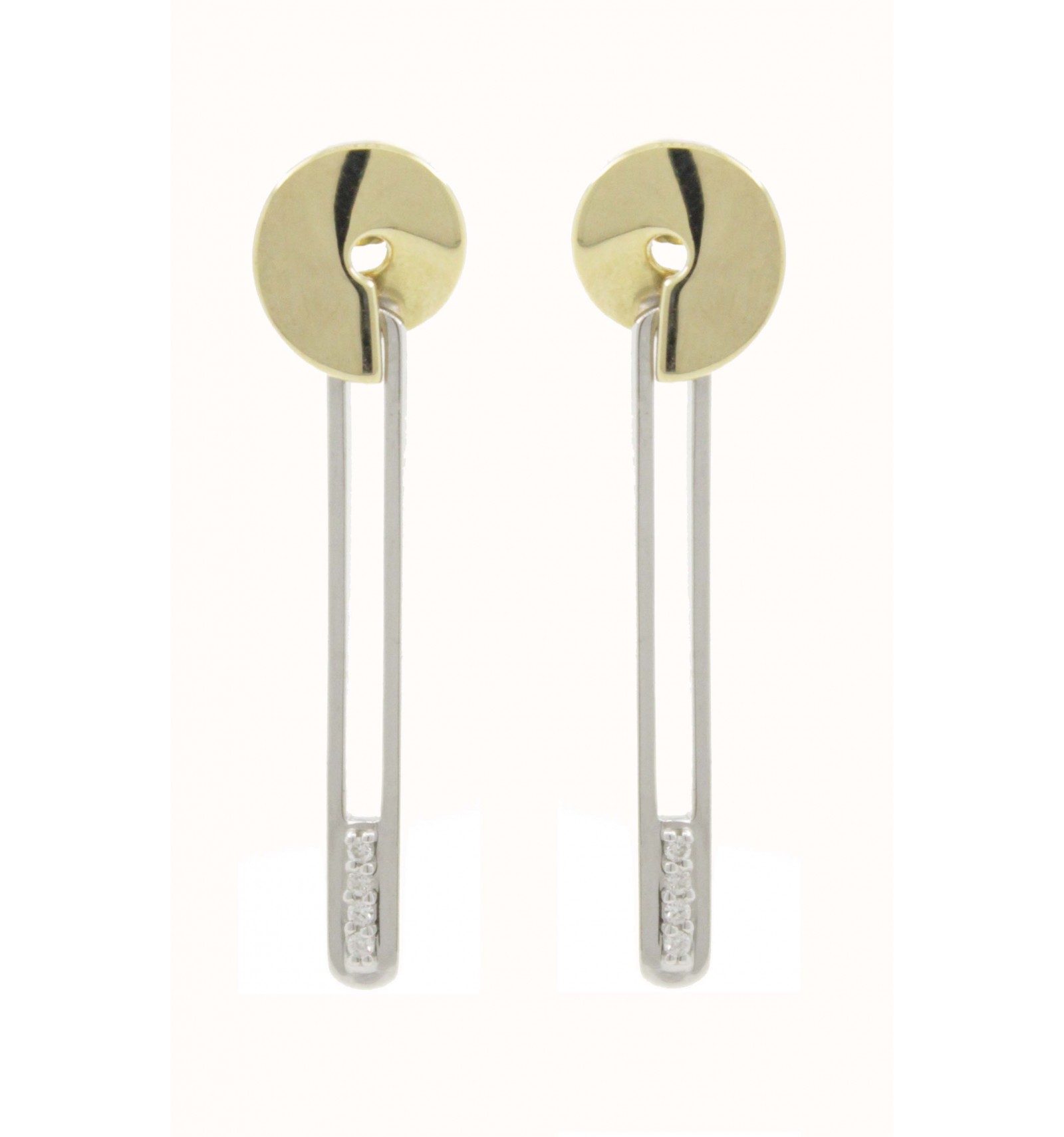Par de pendientes de oro blnaco y oro amarillo de 750 milésimas (18K) con diamantes talla brillante.