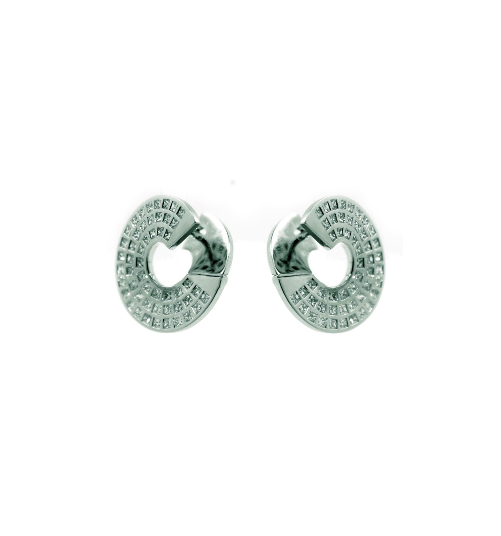 Par de pendientes de oro blanco de 750 milésimas (18K) con 102 diamantes talla princesa.