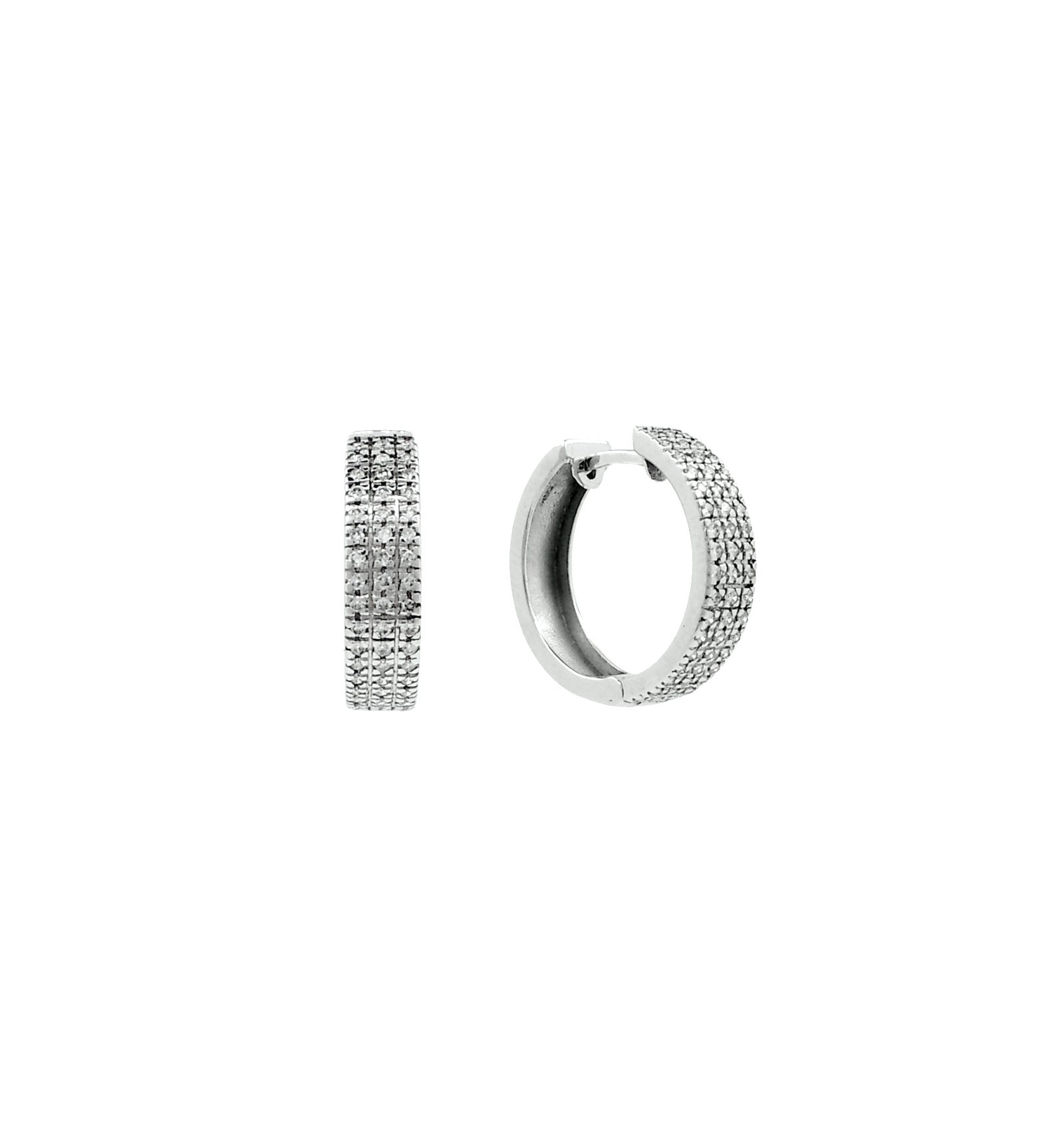Par de pendientes de oro blanco de 750 milésimas (18K) tipo criollas con 102 diamantes talla brillante.