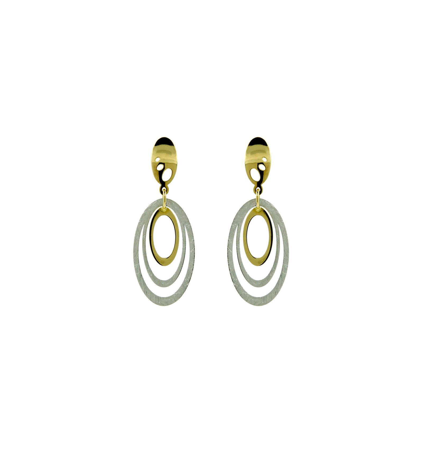 Par de pendientes de oro blanco y oro amarillo de 750 milésimas (18K).