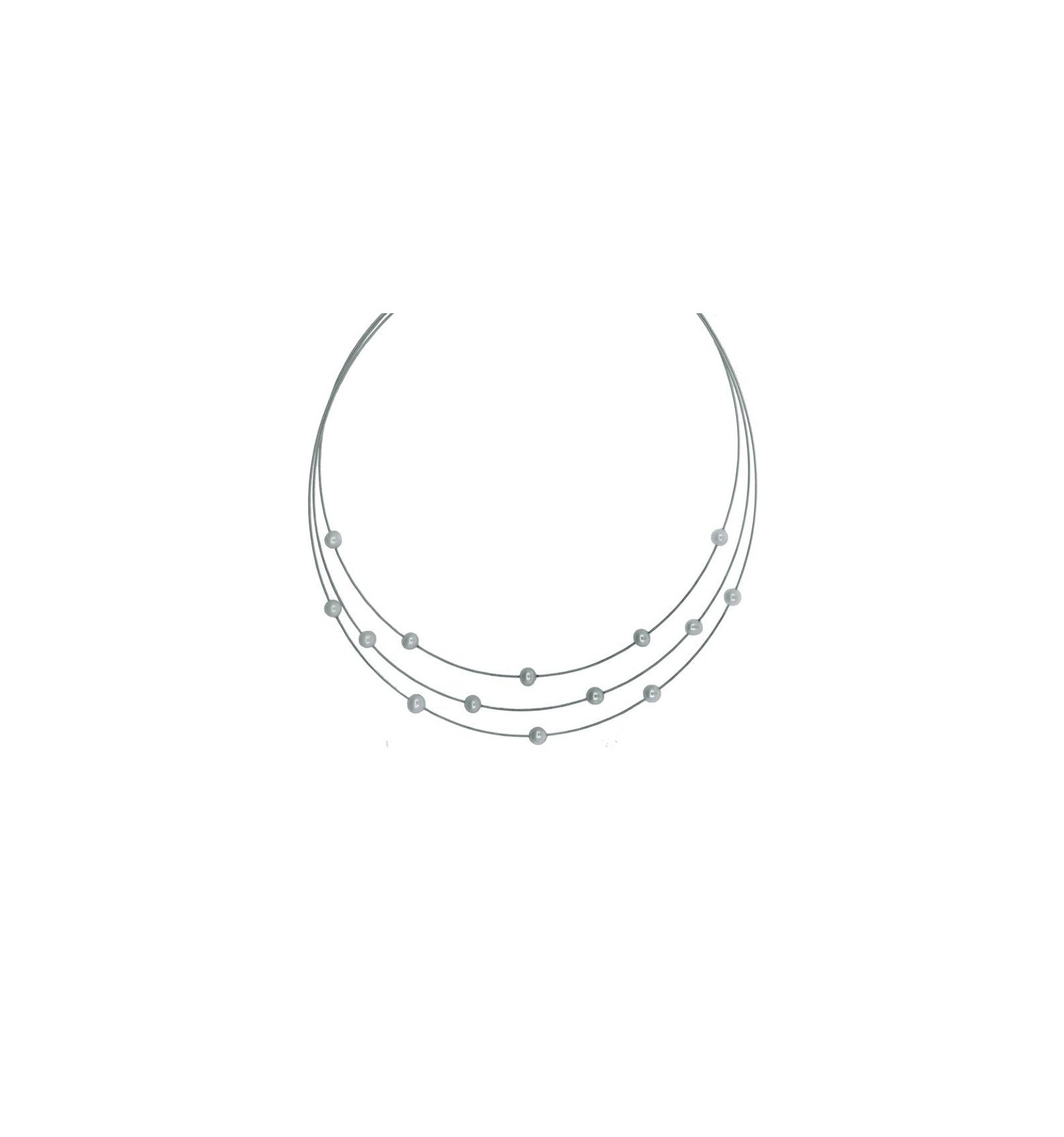 Triple sirga de oro blanco de 750 milésimas (18K) con perlas blancas de 4.50 mm.
