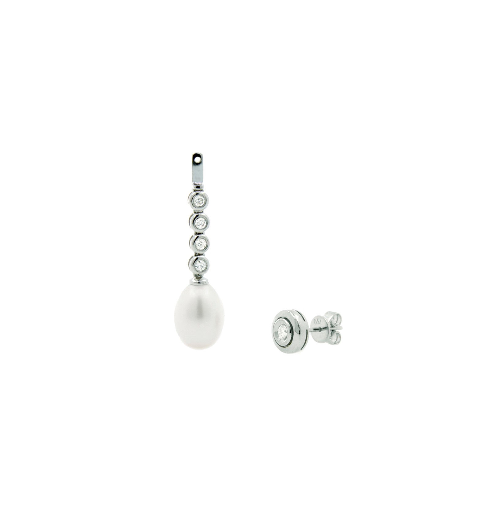 Par de pendientes de oro blanco de 750 milésimas (18K) con diamantes talla brillante y perla cultivada.