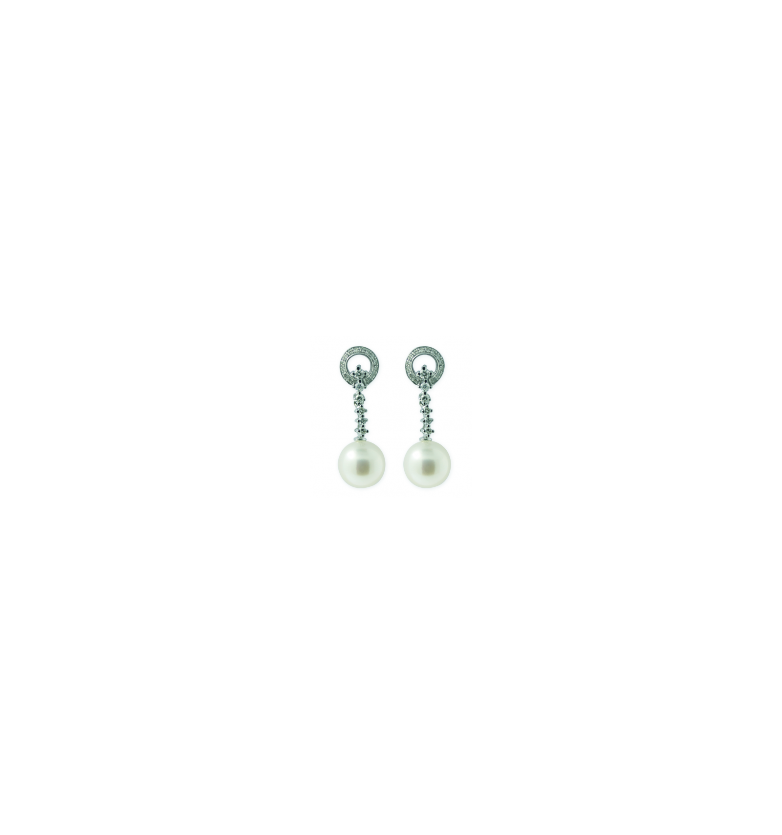 Par de pendientes de oro blanco de 750 milésimas (18K) con diamantes talla brillante y perla cultivada.