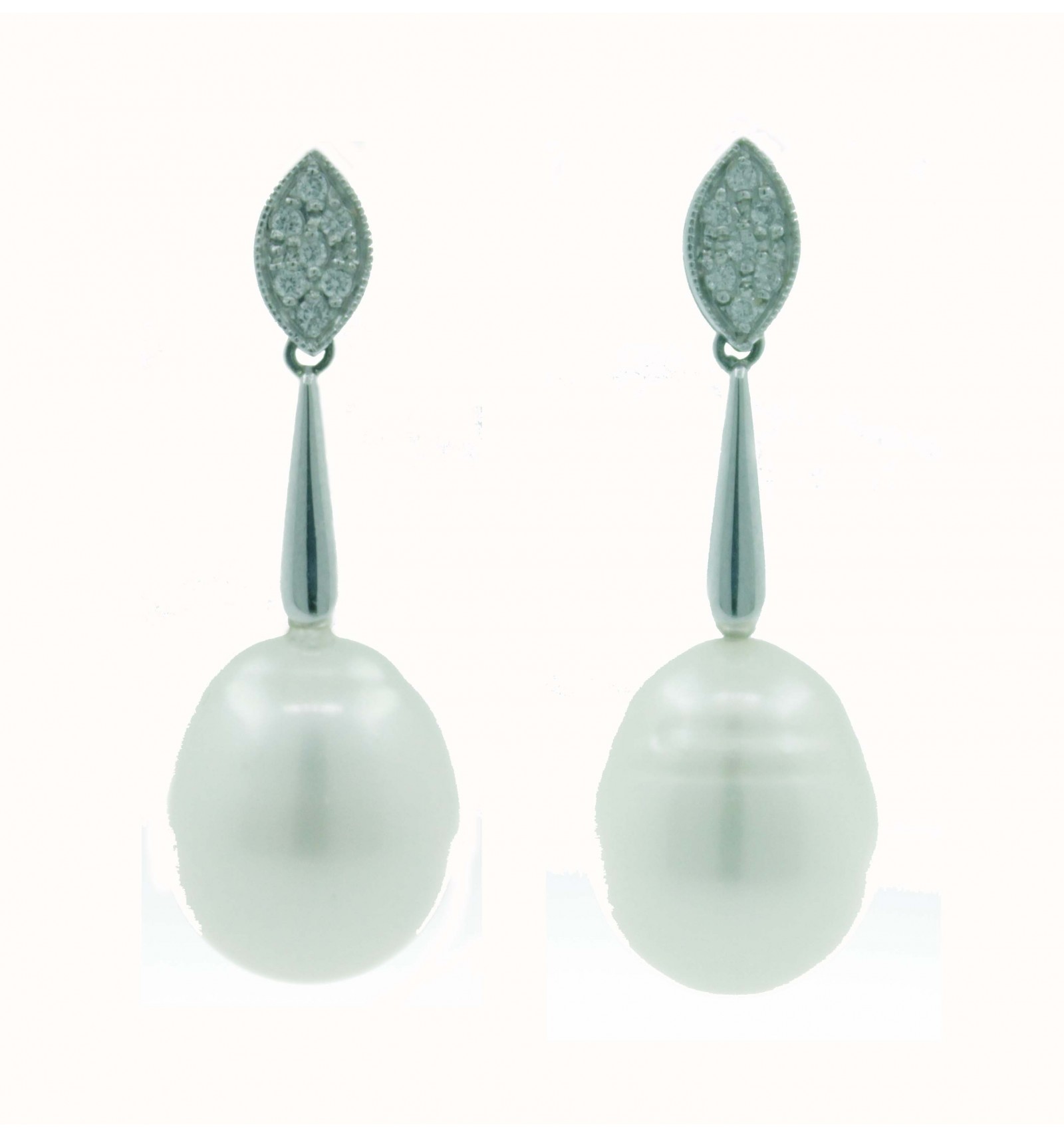 Par de pendientes de oro blanco de 750 milésimas (18K) con diamantes talla brillante y perla cultivada.