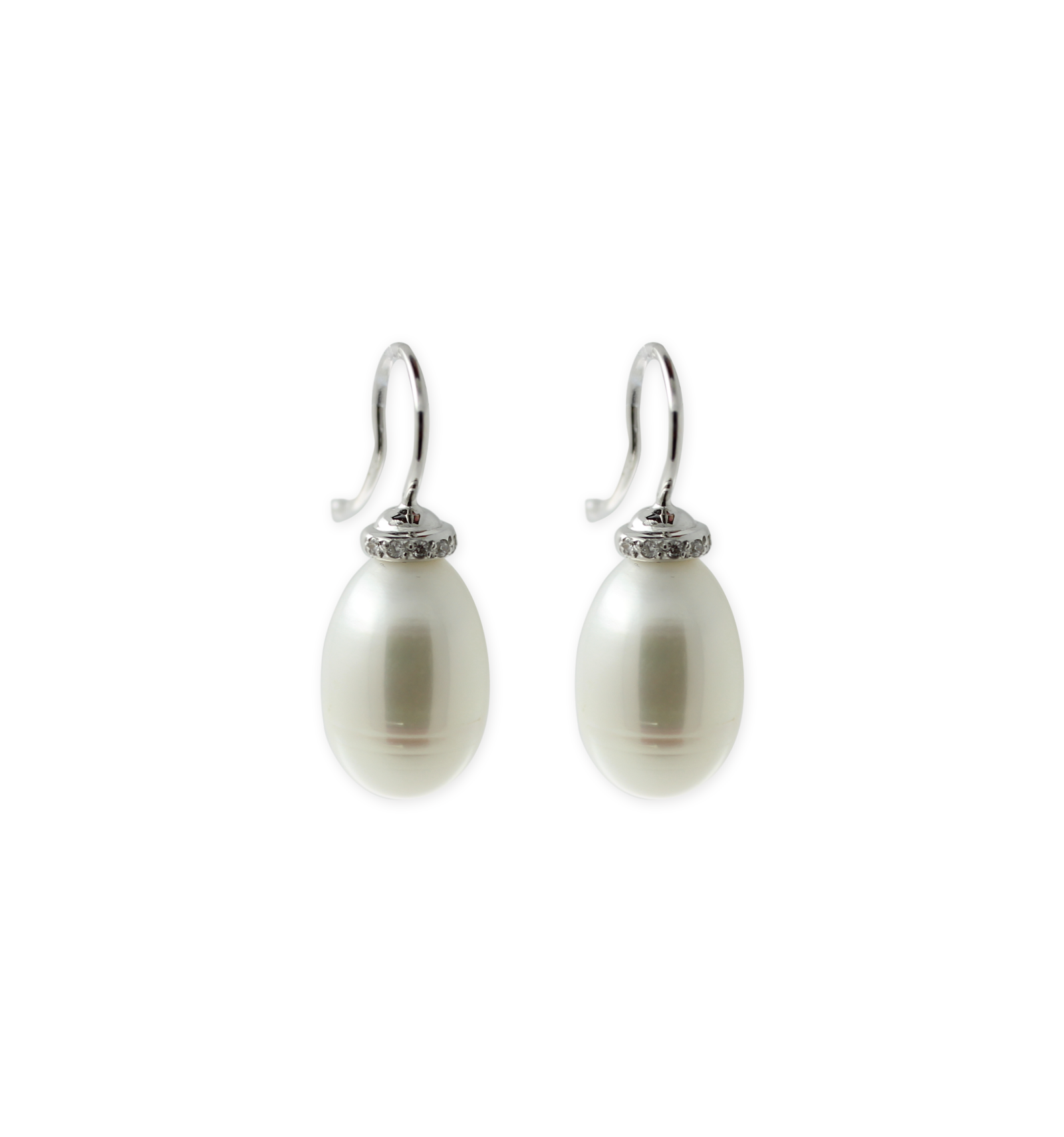 Par de pendientes de oro blanco de 750 milésimas (18K) con diamantes talla brillante y perla cultivada.
