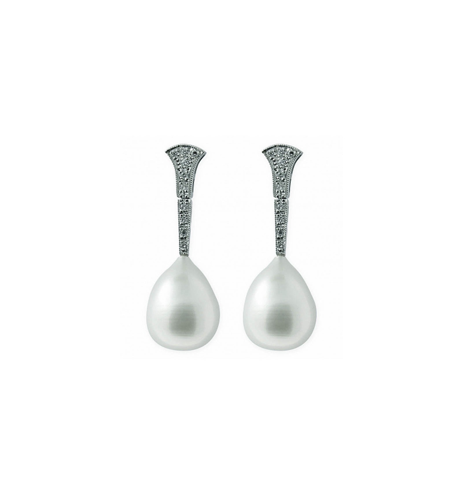 Par de pendientes de oro blanco de 750 milésimas (18K) con diamantes talla brillante y perla cultivada.