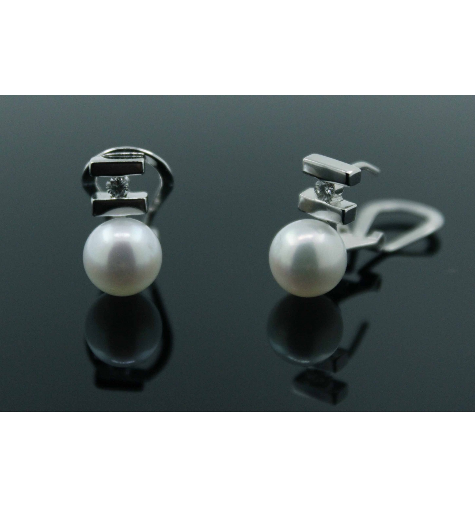 Par de pendientes de oro blanco de 750 milésimas (18K) con diamantes talla brillante y perla cultivada.