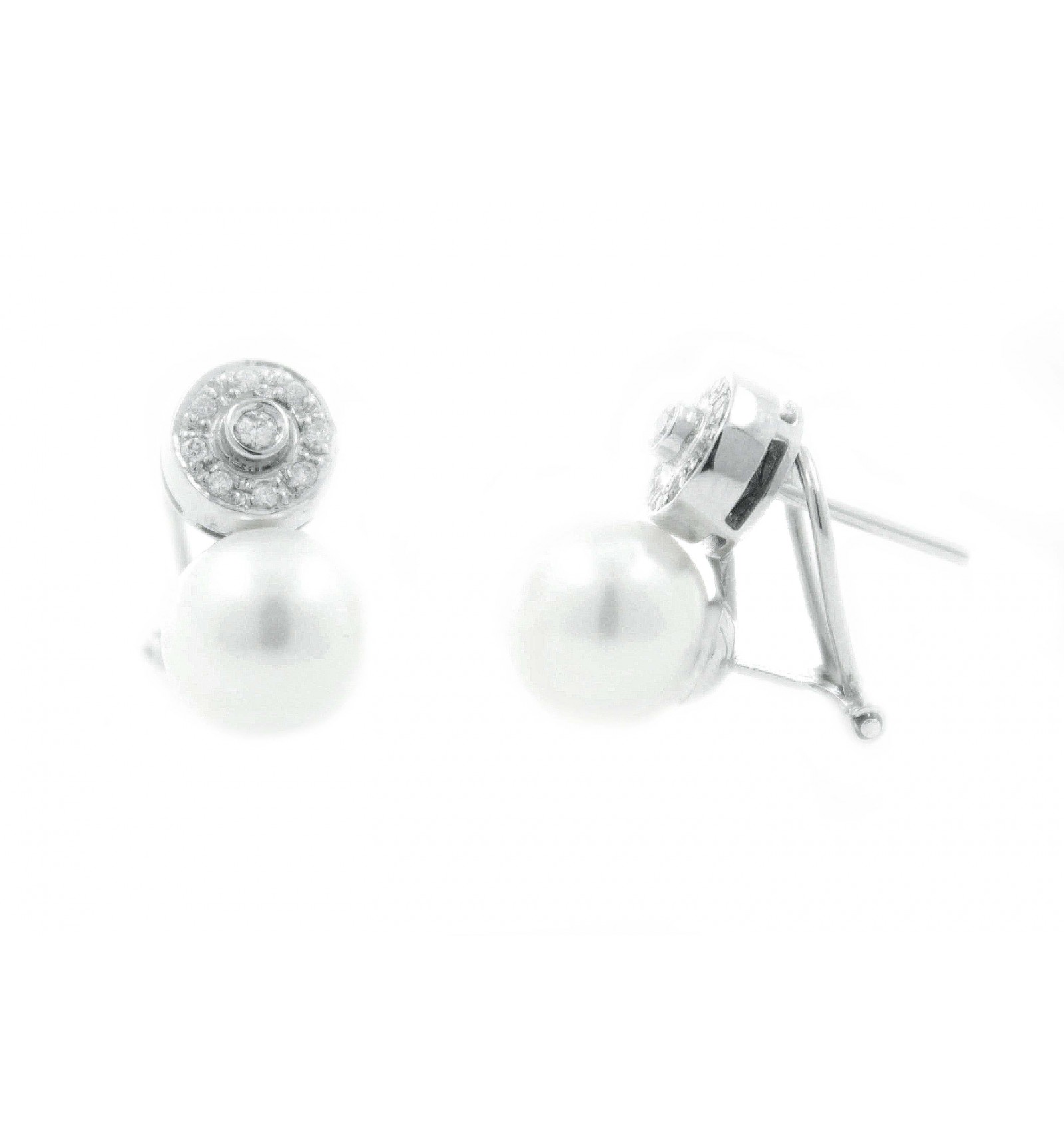 Par de pendientes de oro blanco de 750 milésimas (18K) con diamantes talla brillante y perla cultivada.