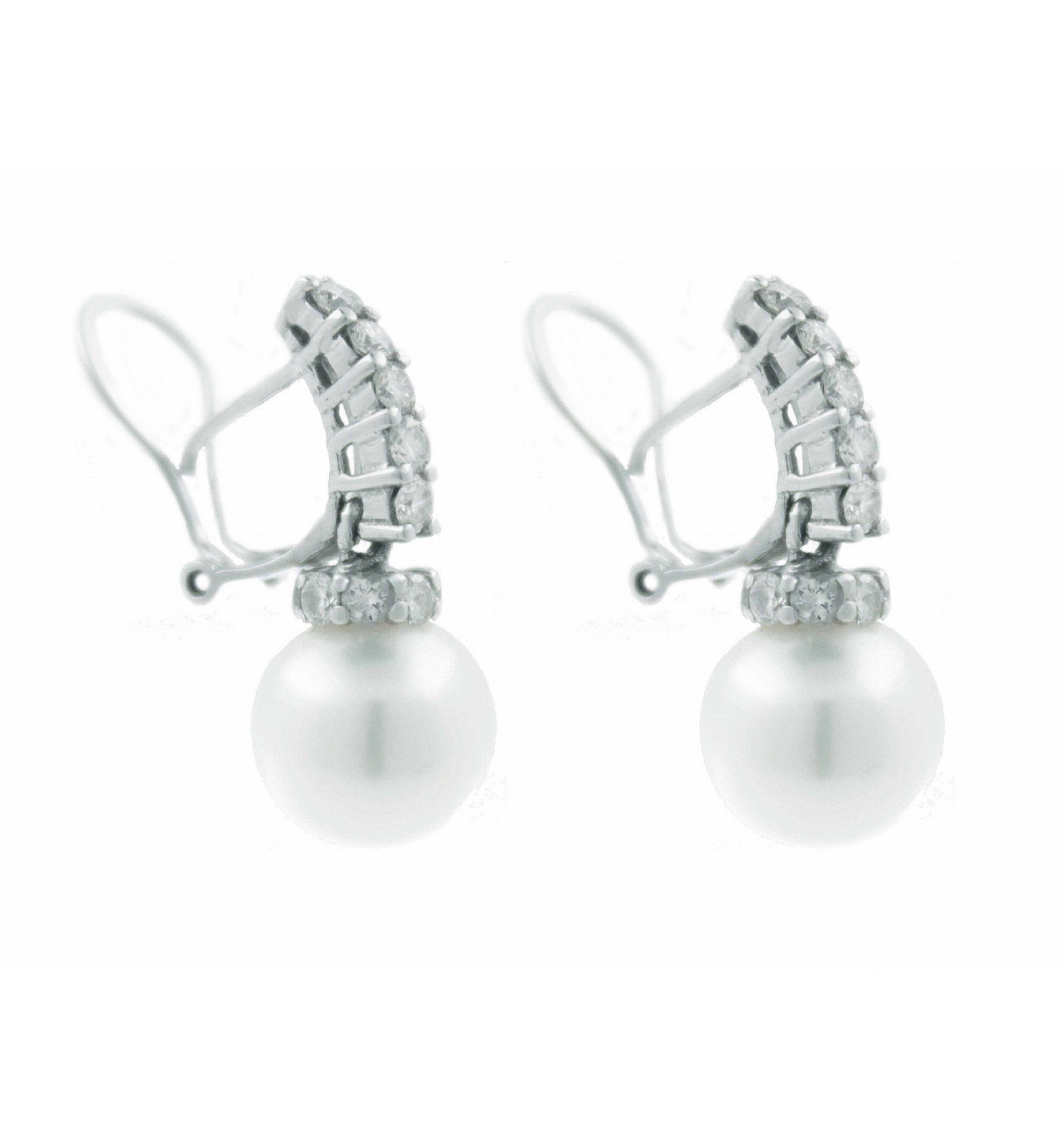 Par de pendientes de oro blanco de 750 milésimas (18K) con diamantes talla brillante y perla australiana.