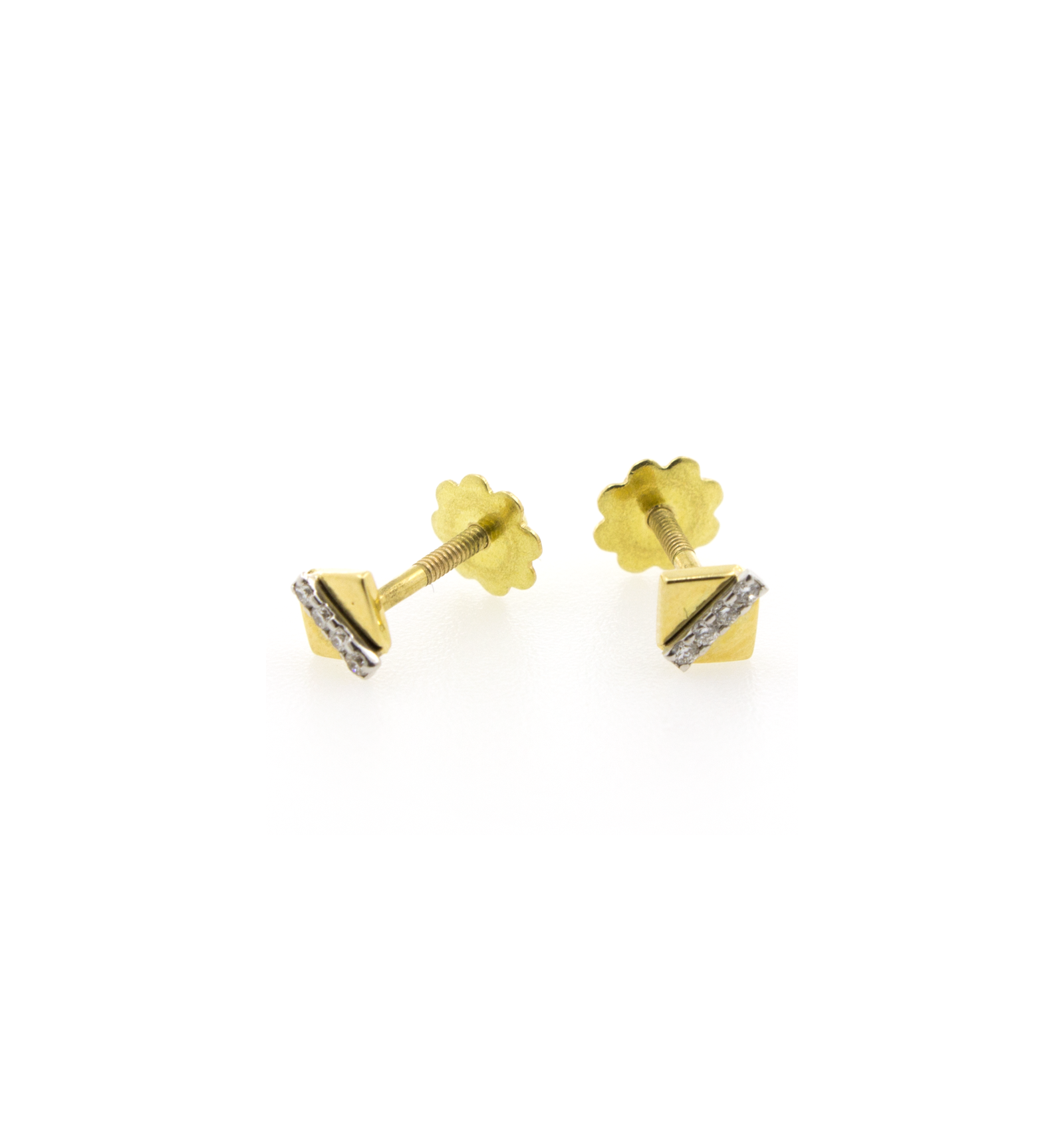 Montura cuadrada de oro amarillo en brillo con cuatro diamantes engastados en diagonal.