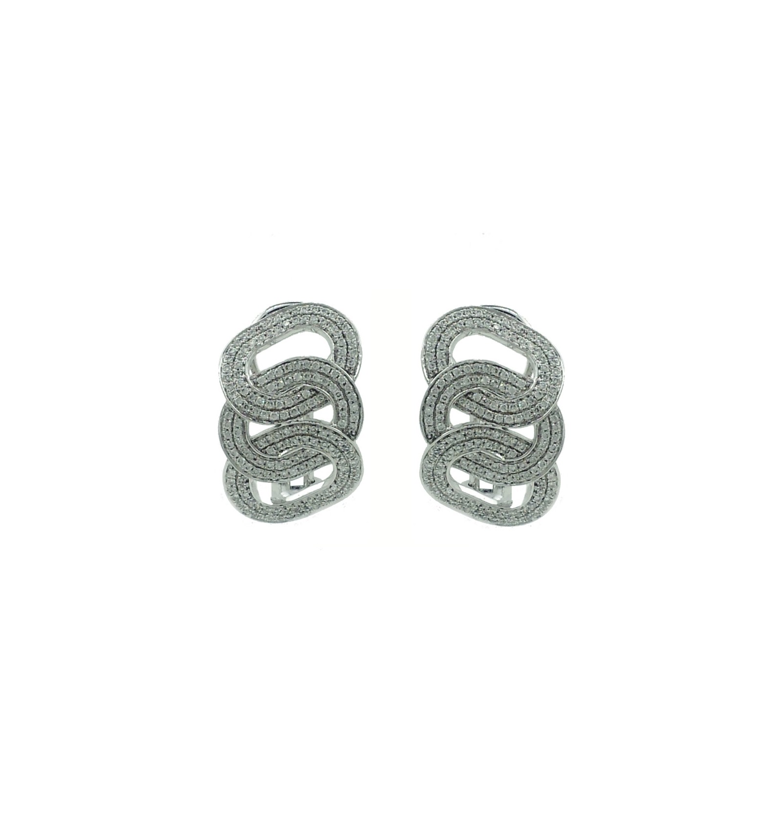 356 diamantes talla brillante engastados en carril en una original montura de aros entrelazados.