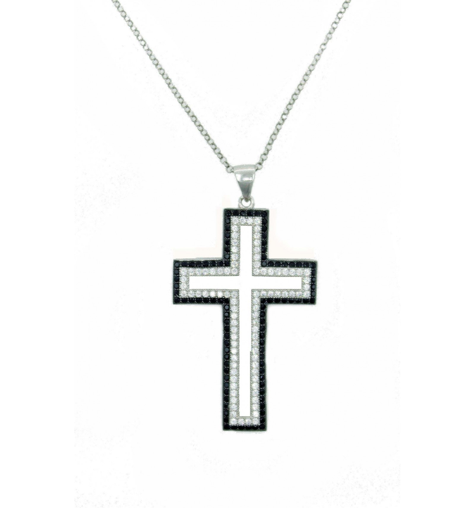 Cruz de plata rodiada de 925 milésimas con circonitas.