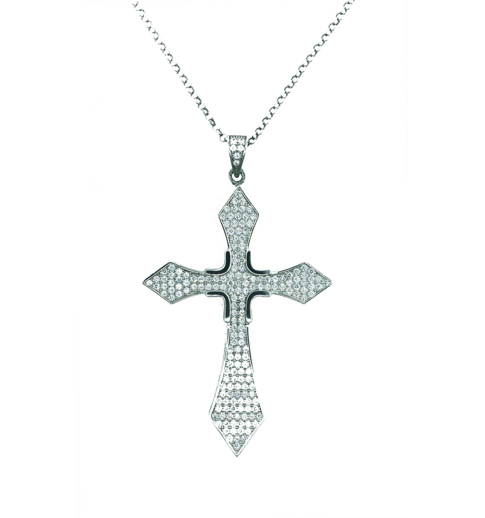 Cruz de plata rodiada de 925 milésimas con circonitas.