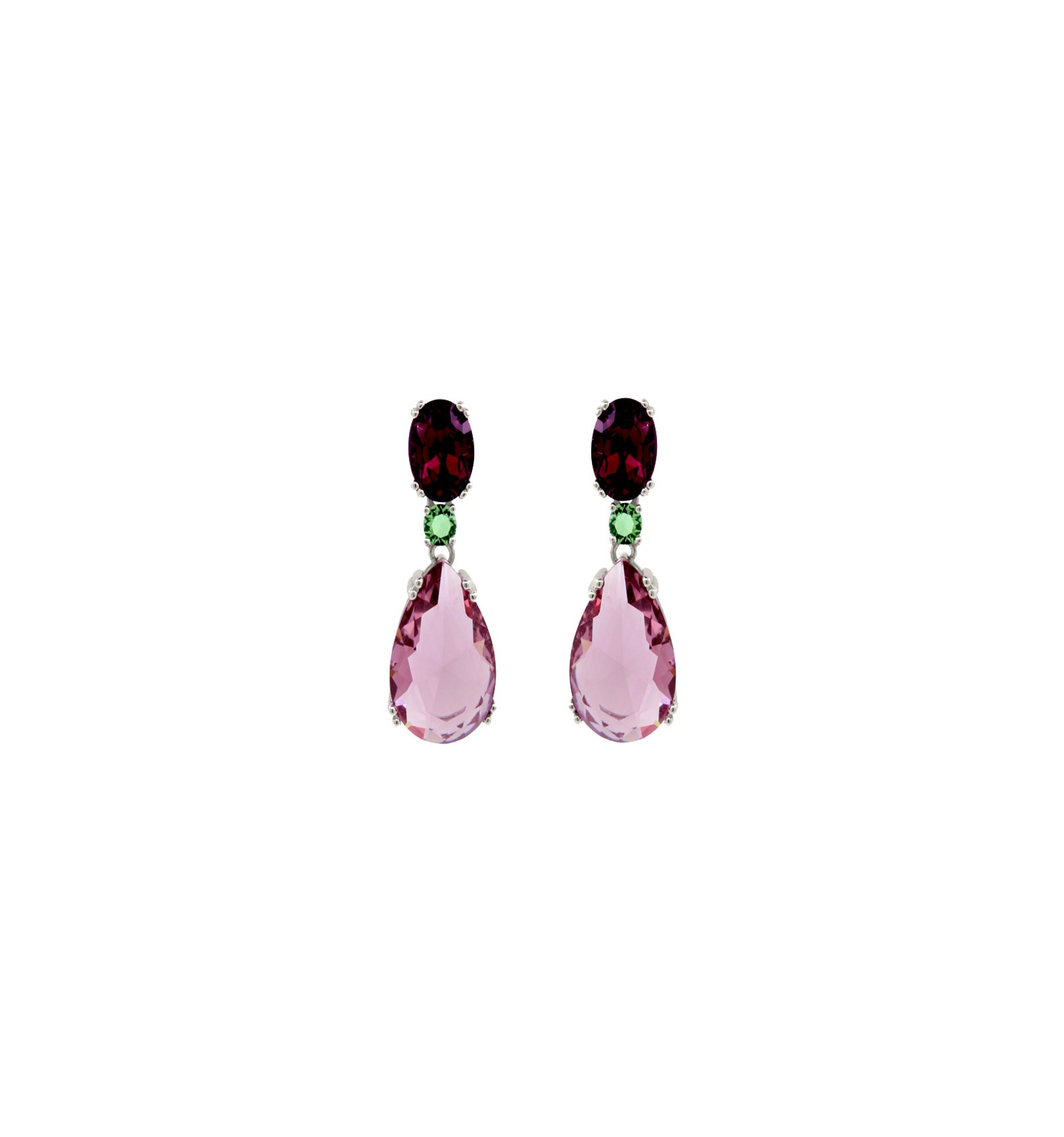 Par de pendientes de plata de 925 milésimas con piedras naturales de color en tonos morado y verde.