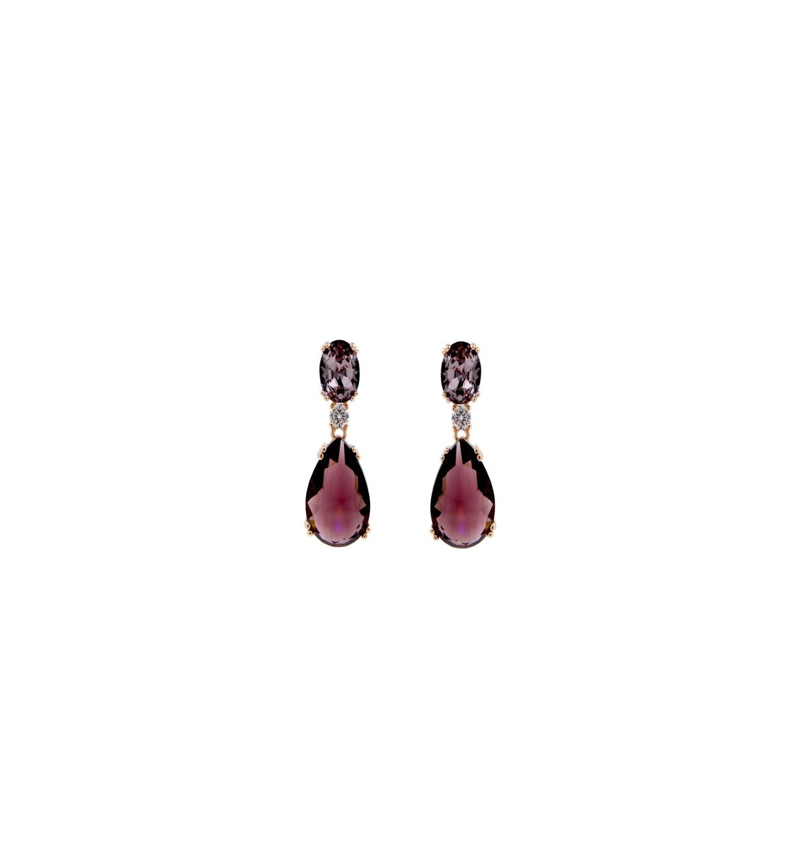 Par de pendientes de plata de 925 milésimas chapada en rosa con piedras naturales de color en tonos morado y blanco.