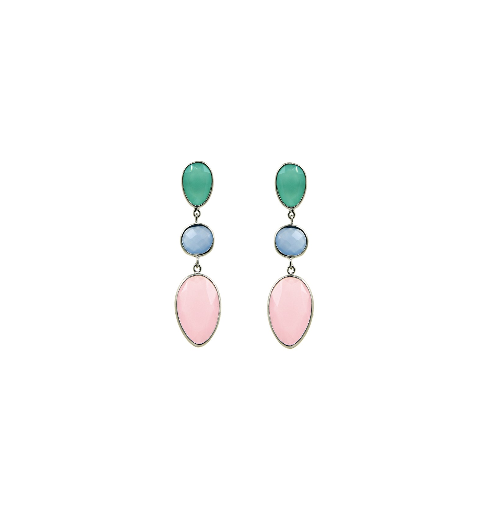 Par de pendientes de plata de 925 milésimas con piedra natural de color en tonos verde, azul y rosa.